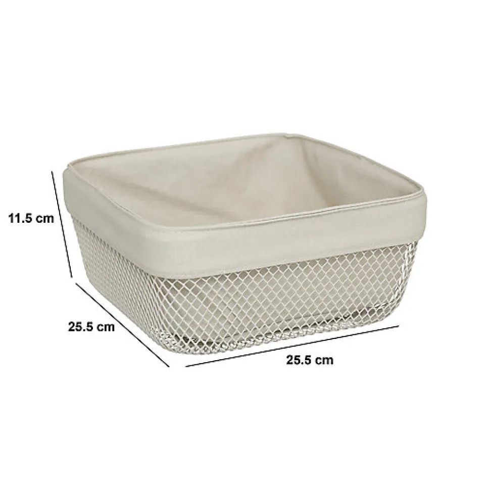 Corbeille à pain « Mayaj » en métal et coton beige 25,5×25,5cmContenu : 1 corbeilleDimensions : L. 25.5 x P. 25.5 x H. 11.5 cmColoris : BeigeMarque : 5 five simply smart