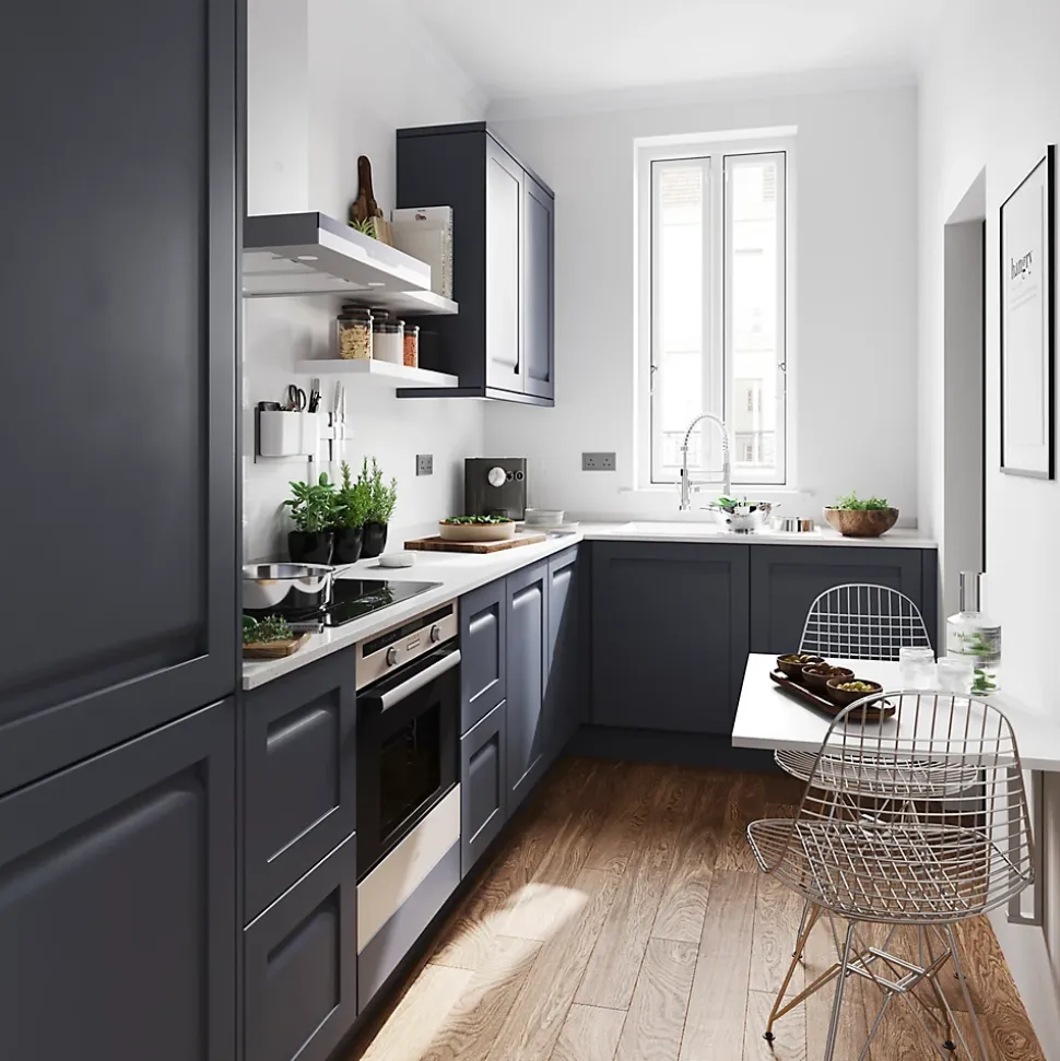 Corniche et bandeau cache-lumière GoodHome Garcinia bleu mat H. 35 mm x l. 2.4 m x Ep. 59.5 mm