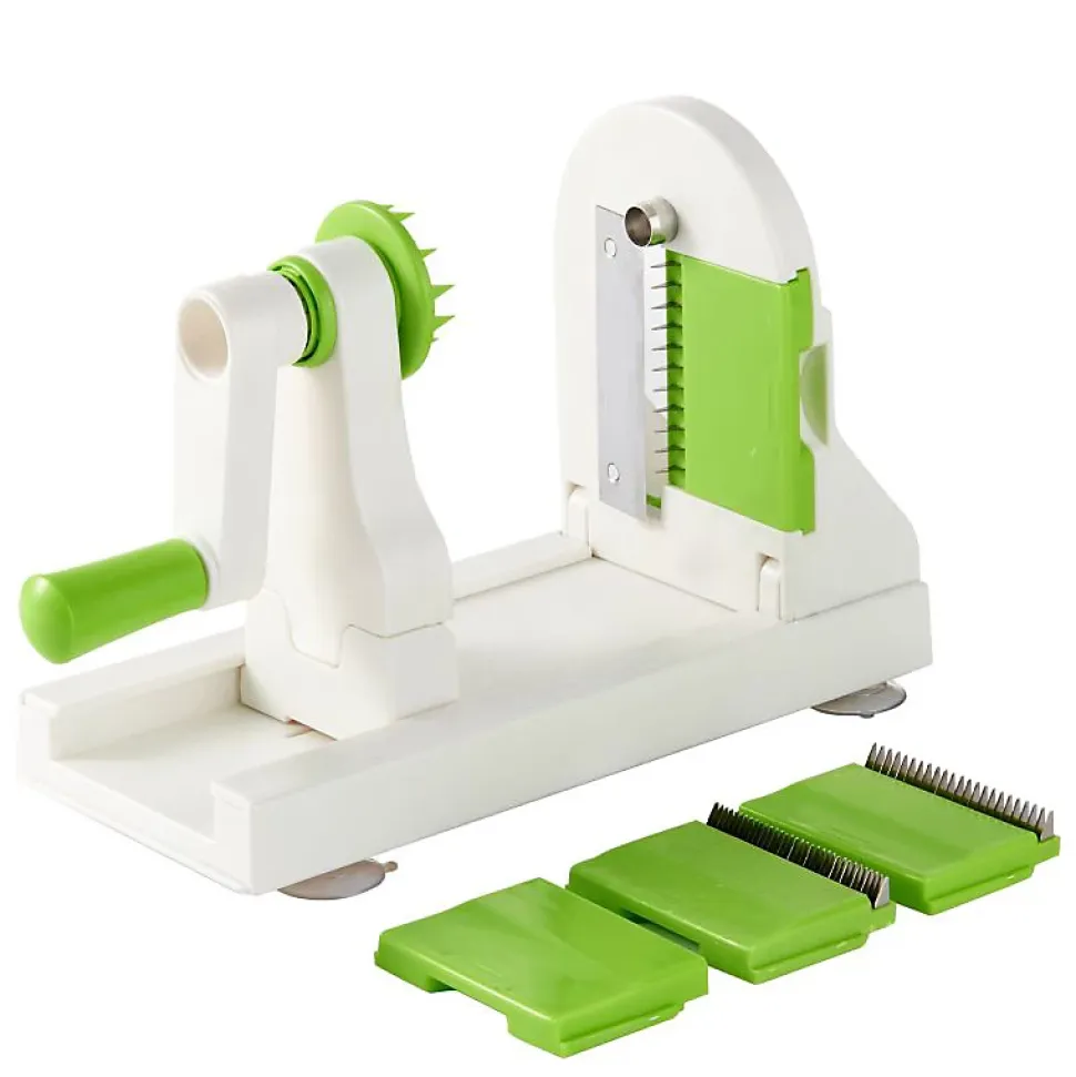 Fonctionnalités :Lot de spirales complet avec 4 lames interchangeablesDernière conception avec une construction robusteFait de qualité supérieure assez solide pour résister aux légumes les plus dursAppuyez sur les ventouses sur une surface propre et lisseCorps principal rétractable ou pliable pour un rangement facileAvec verrouillage avant et arrière pour plus de stabilitéLames interchangeables4 lames en acier inoxydable ultra-tranchantes étiquetéesStockage sûr et compact pour toutes les lamesLes composants se démontent pour un nettoyage facileMécanisme de dégagement rapide du porte-lames pour le stockage le plus compactCaractéristiques:Nom de marque : HerzbergCouleur : blanc et vertMatériau du corps : ABSMatériau de la lame : acier inoxydable1 x 6mm Julienne1 x 3mm julienne1 x 2 mm julienne1 x trancheuse en spirale