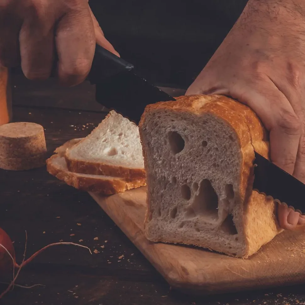 - LE PETIT + : Sa lame dentelée permet une coupe précise et sans effort, idéale pour les pains à croûte dure ou les brioches moelleuses