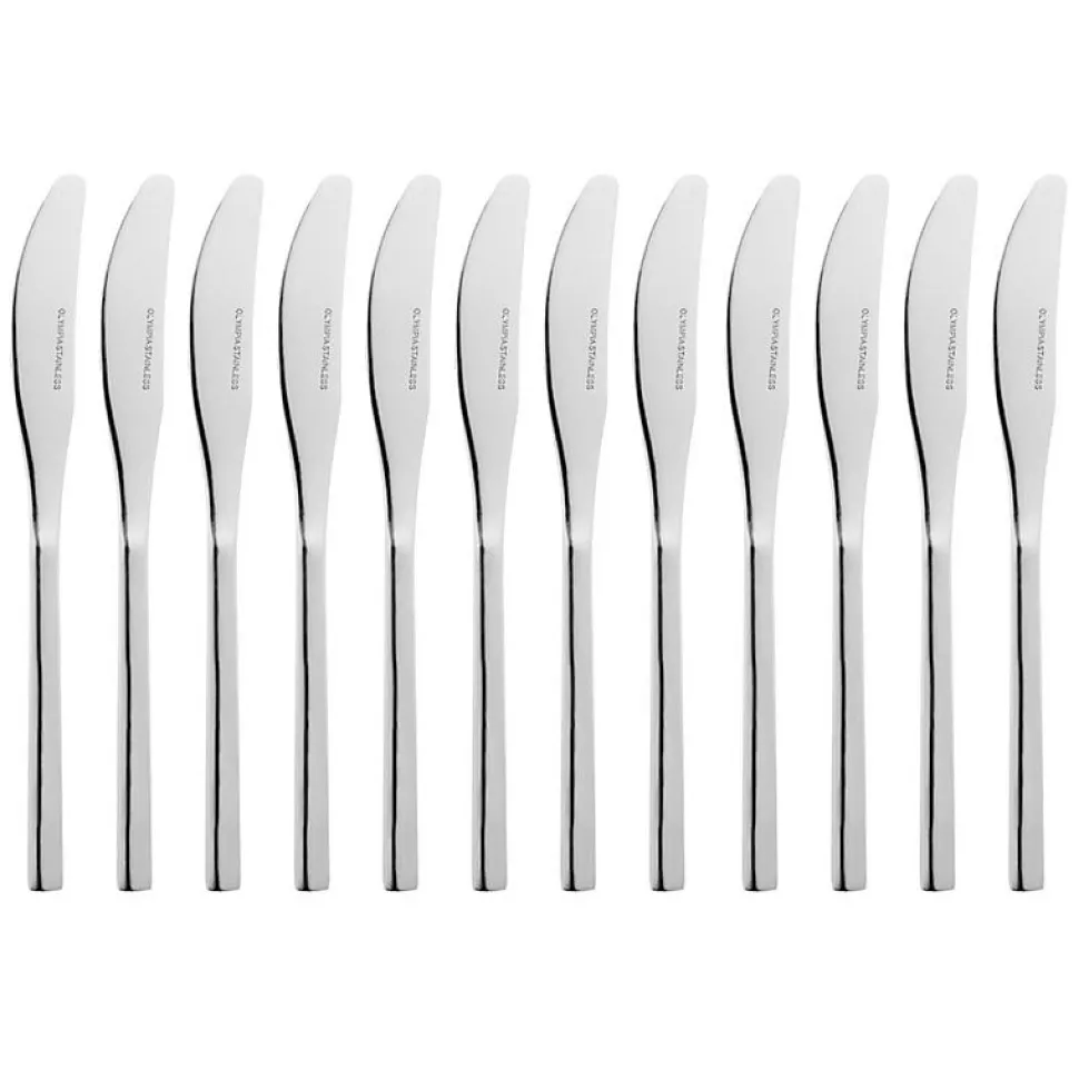 Couteau de table Nombre de Pièces: 12Dimensions: 233(L)mm.Matériel: Acier inoxydable 18/10 poli haute qualité.Poids: 1,14 kgInox poli haute qualité.Design moderne, ligne élancée