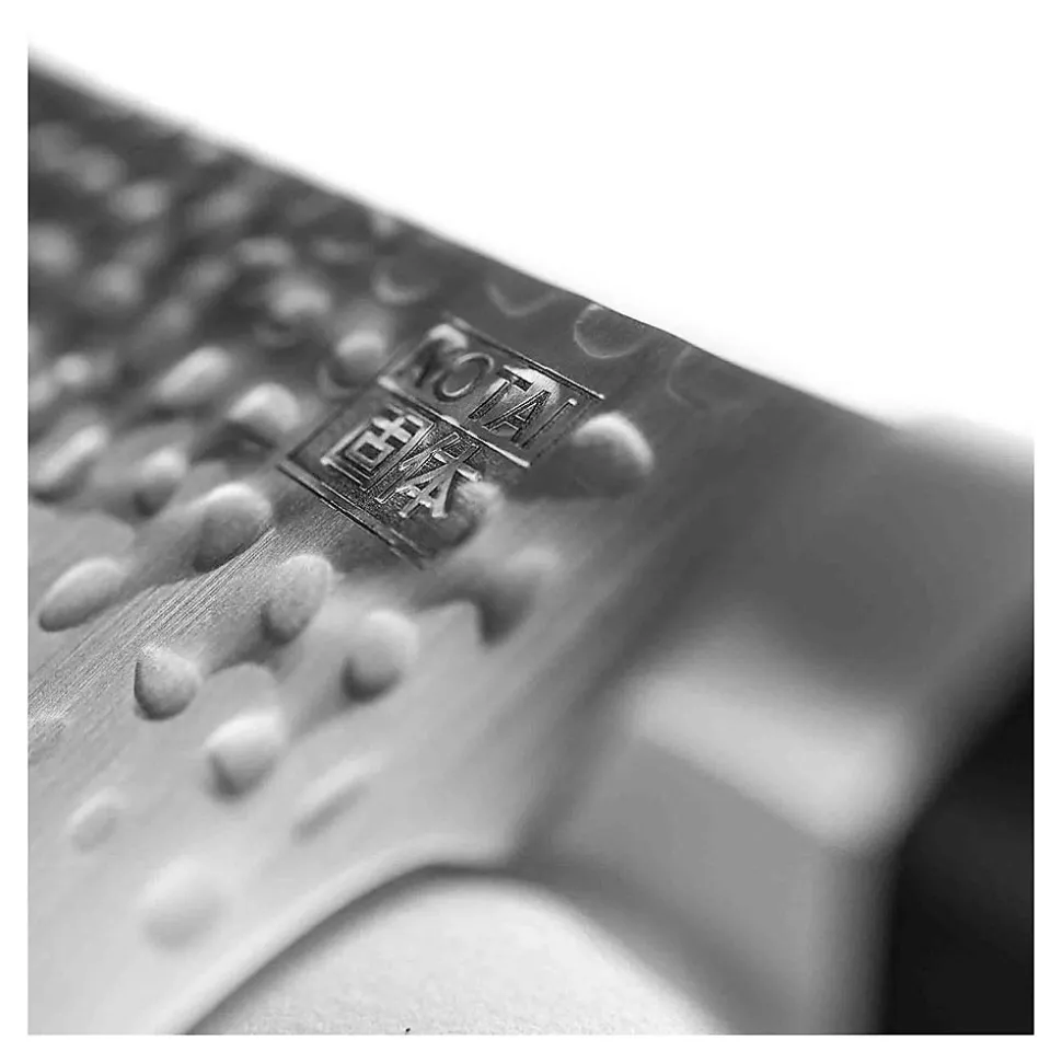 Précision du savoir faire des couteaux japonais, robustesse des couteaux en acier inoxydable occidentaux.Kotai a choisi de ne faire aucune concession en réunissant le meilleur des deux mondes.La version « Tsuchime » comporte une lame martelée à la main. Esthétiquement attrayant et fonctionnel, le motif martelé crée de minuscules poches d’air entre la lame et l’aliment à couper.