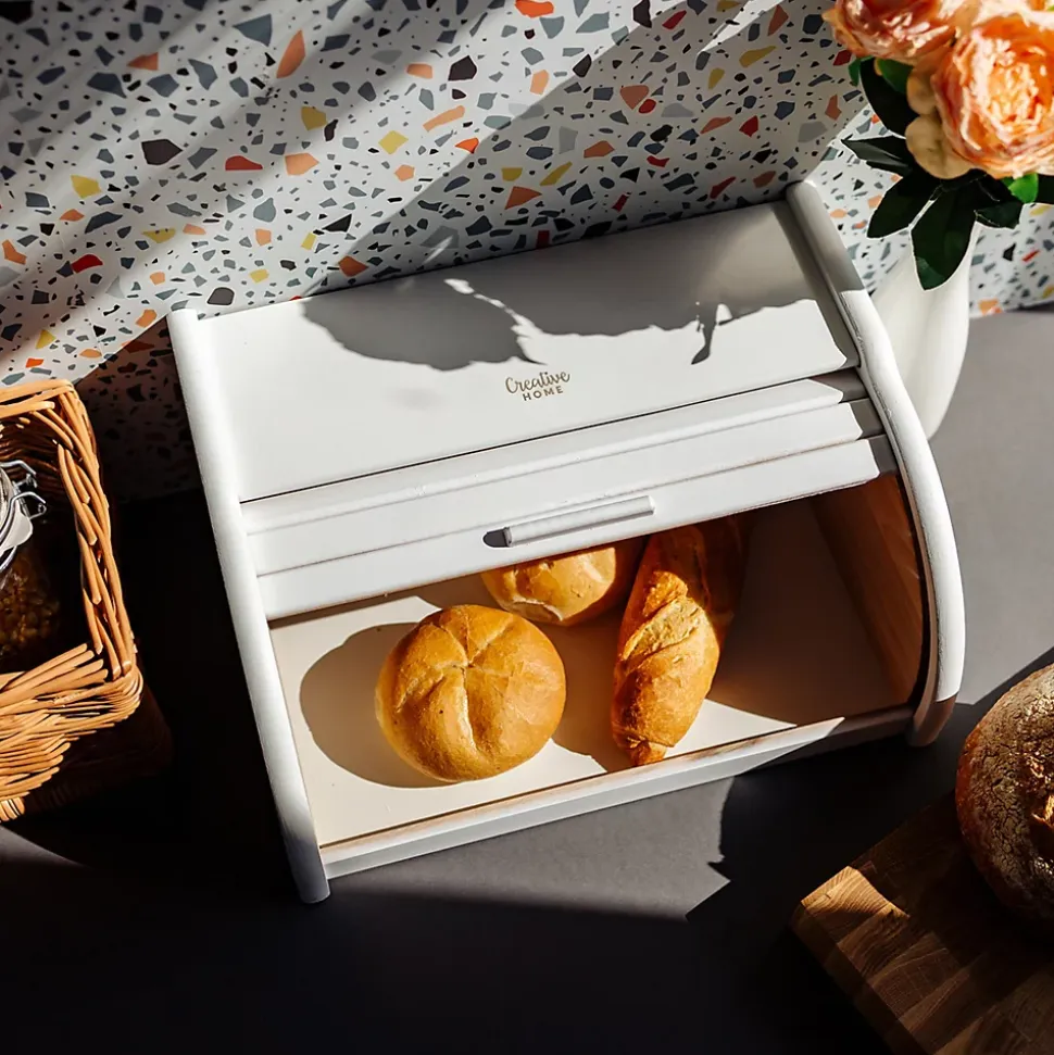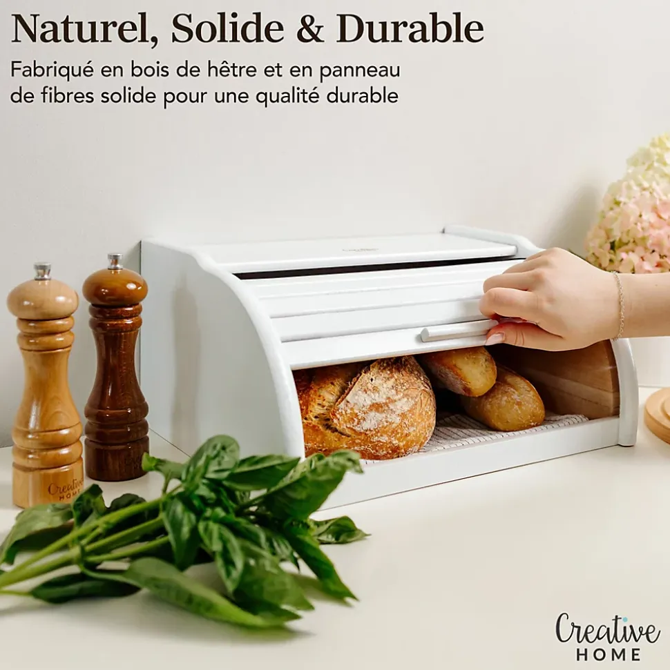Creative Home Boîte à Pain Blanc - 38 x 28,5 x 17,5 cm (+/- 1 cm) - Boite a Pain Bois - Huche à Pain - Boite en Bois