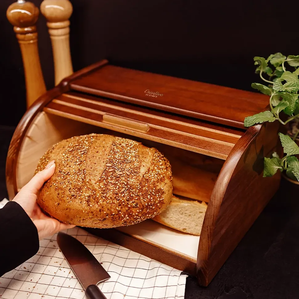 Creative Home Boîte à Pain Brun – 38 x 28,5 x 17,5 cm (+/- 1 cm) – Boite a Pain Bois – Huche à Pain – Boite en Bois