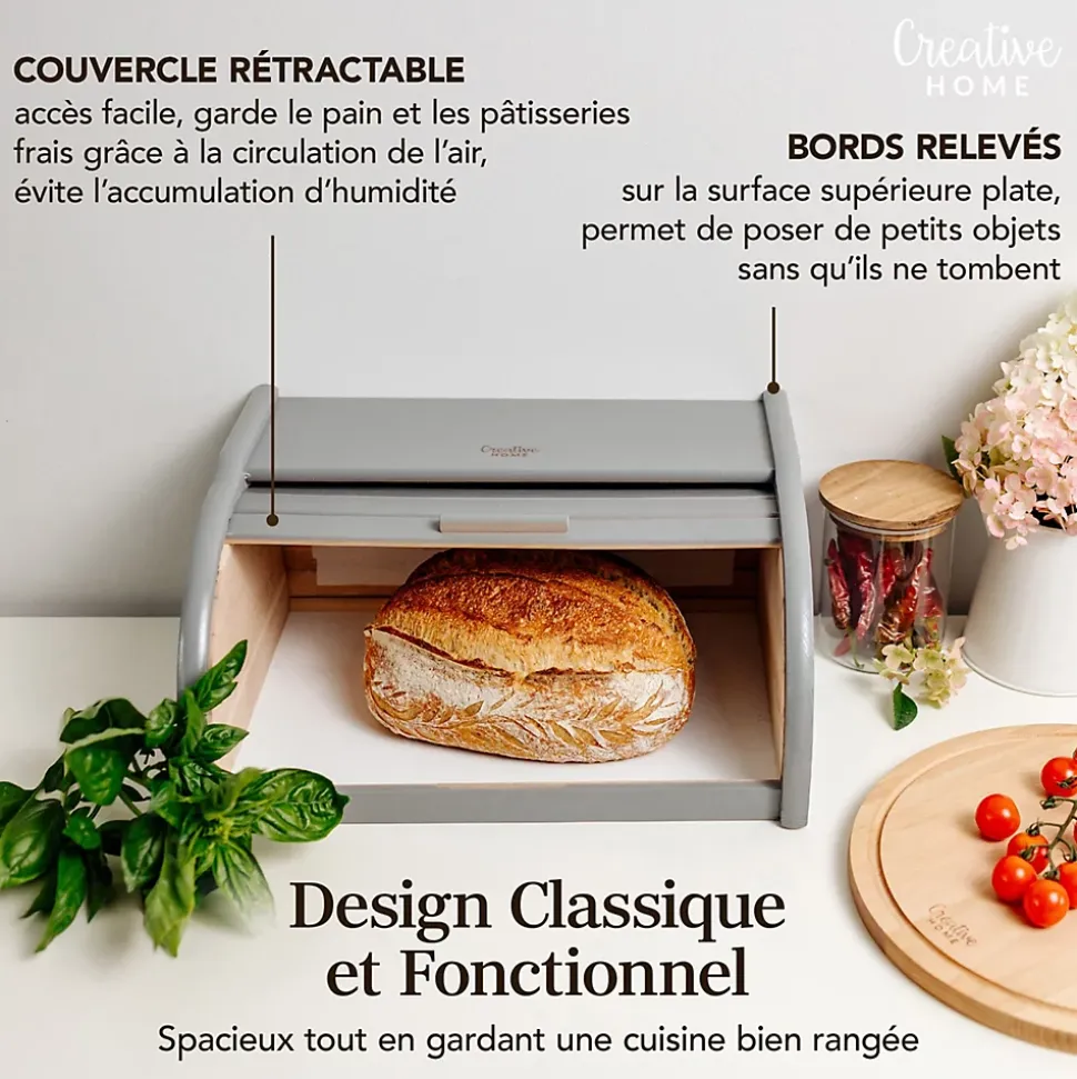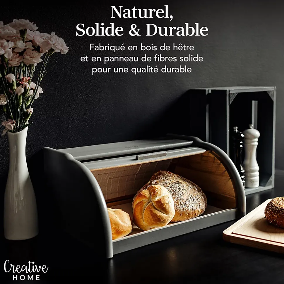 LONGUE CONSERVATION – Les petits espaces entre les compartiments de la corbeille permettent à l’air de circuler et à garder votre pain frais pour longtemps ! Prolongez la fraîcheur de votre pain, baguette, ciabatta, croissant, gâteau, muffin, biscuit ou croque monsieur conservés à l’intérieur de la boîte. Grâce à notre corbeille, vous garderez votre cuisine organisée et de nombreux aliments pourront y être stockés, garantissant une bonne conservation.DESIGN MODERNE – Grâce à son design élégant et vintage et à son bois de hêtre naturel, notre boîte à pain convient à tous les types de pièces, toutes les cuisines et restaurants. La boite est facile à ouvrir grâce à son couvercle et à sa poignée.UTILISATIONS DIVERSES – Notre banette a pain peut être utilisée non seulement pour le pain, mais aussi pour d’autres produits secs ou sucrés. Elle peut servir de boite a fromage pour frigo, boîte a biscotte ou boite a pain de mie par exemple.PRODUIT DURABLE – Vous craignez que vos ustensiles de cuisine viennent de Chine et vous ne savez pas s’ils proviennent d’une source fiable ? Nous pouvons vous garantir que notre niche à pain Creative Home est faite de bois de hêtre naturel, est robuste et durable !FABRIQUÉ DANS L’UE – Nous nous procurons nos produits dans l’Union européenne, qui applique certaines des normes les plus élevées au monde. C’est pourquoi, nous pouvons garantir une haute qualité de nos produits à nos clients. Nos produits sont fabriqués à partir de matériaux naturels et non toxiques.