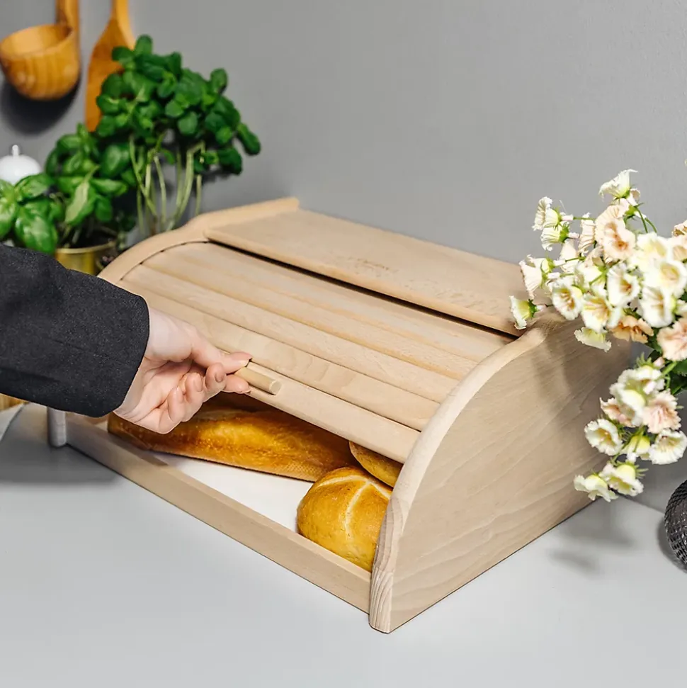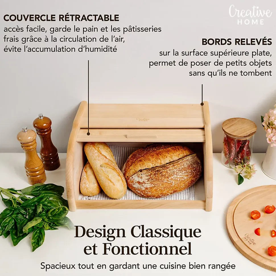 LONGUE CONSERVATION – Les petits espaces entre les compartiments de la corbeille permettent à l’air de circuler et à garder votre pain frais pour longtemps ! Prolongez la fraîcheur de votre pain, baguette, ciabatta, croissant, gâteau, muffin, biscuit ou croque monsieur conservés à l’intérieur de la boîte. Grâce à notre corbeille, vous garderez votre cuisine organisée et de nombreux aliments pourront y être stockés, garantissant une bonne conservation.DESIGN MODERNE – Grâce à son design élégant et vintage et à son bois de hêtre naturel, notre boîte à pain convient à tous les types de pièces, toutes les cuisines et restaurants. La boite est facile à ouvrir grâce à son couvercle et à sa poignée.UTILISATIONS DIVERSES – Notre banette a pain peut être utilisée non seulement pour le pain, mais aussi pour d’autres produits secs ou sucrés. Elle peut servir de boite a fromage pour frigo, boîte a biscotte ou boite a pain de mie par exemple.PRODUIT DURABLE – Vous craignez que vos ustensiles de cuisine viennent de Chine et vous ne savez pas s’ils proviennent d’une source fiable ? Nous pouvons vous garantir que notre niche à pain Creative Home est faite de bois de hêtre naturel, est robuste et durable !FABRIQUÉ DANS L’UE – Nous nous procurons nos produits dans l’Union européenne, qui applique certaines des normes les plus élevées au monde. C’est pourquoi, nous pouvons garantir une haute qualité de nos produits à nos clients. Nos produits sont fabriqués à partir de matériaux naturels et non toxiques.