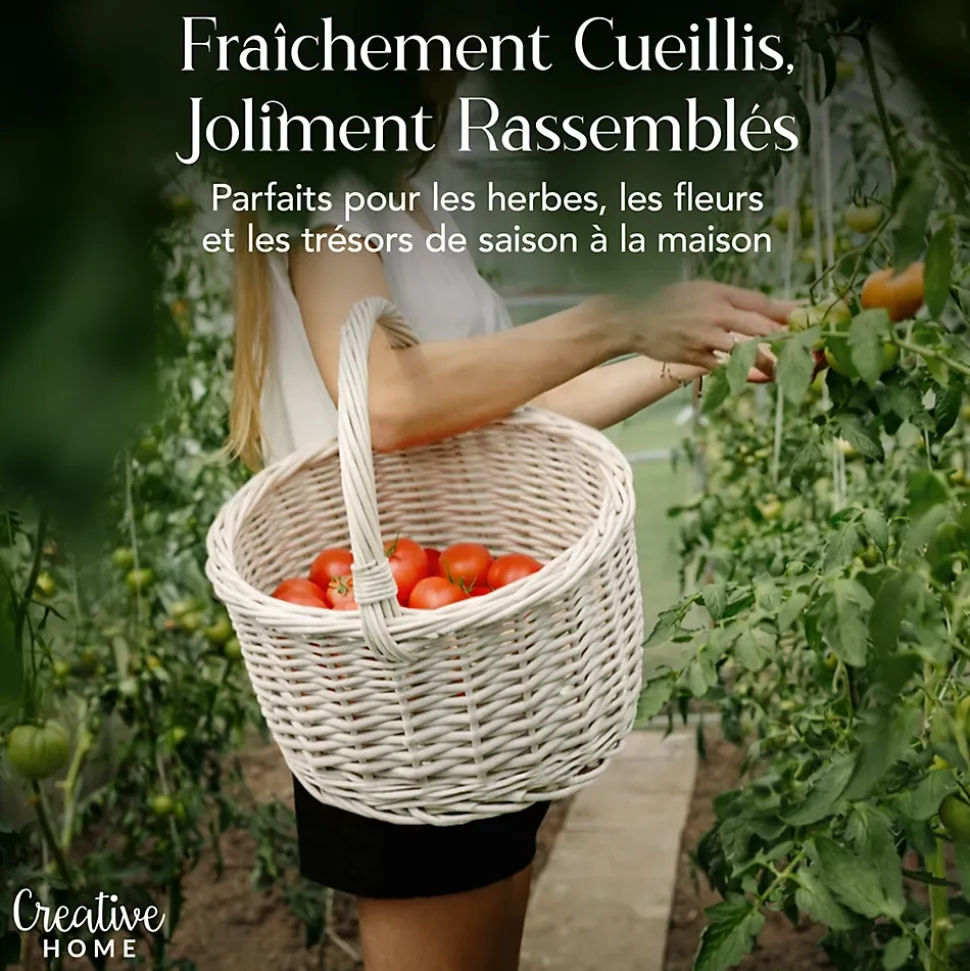 EXCELLENTE QUALITÉ – Le panier Creative Home est fabriqué à la main en osier 100 % naturel, teint en blanc, pour une grande durabilité et une bonne résistance.Léger et doté de poignées ergonomiques, il est facile à transporter au quotidien.Chaque panier est tissé à la main, ce qui le rend unique, avec une variation possible des dimensions de +/- 2 cm.MULTIFONCTIONNEL – Ce panier tressé est idéal comme panier à provisions ou élément de décoration.Parfait en panier cadeau ou corbeille à fruits, il convient pour les courses, les pique-niques, le transport en voiture et le rangement de jouets, magazines ou plantes.ACCESSOIRE PRATIQUE POUR LA MAISON – Élégant et fonctionnel, son aspect naturel et sa couleur blanche s’accordent avec tous les styles d’intérieur.Il peut aussi servir de panier à provisions, corbeille à pain, panier à anses, panier de récolte, sac à provisions ou panier à champignons.DESIGN INTEMPOREL – Un accessoire décoratif et pratique, pensé pour garder votre intérieur bien rangé, tout en apportant une touche naturelle.FABRIQUÉ DANS L’UE – Tous nos produits sont fabriqués dans l’Union européenne, où des normes de qualité strictes sont appliquées.Ils sont conçus à partir de matériaux naturels non toxiques, pour une qualité fiable et durable.