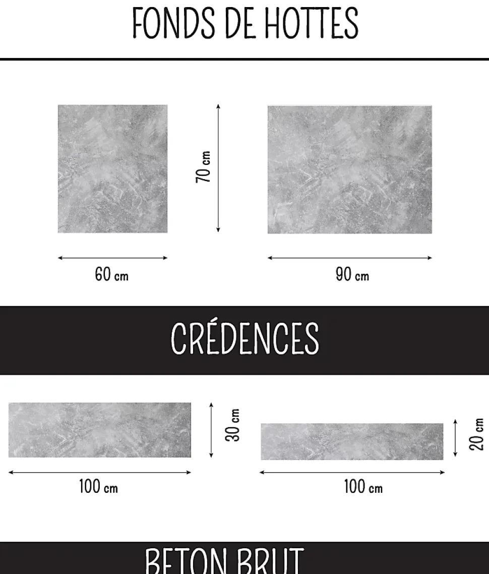 Une décoration tendance avec cette crédence prête à poser dans le style matière brut, idéale pour s’harmoniser avec une cuisine en bois.Couleurs : GRIS effet béton brut. Crédence de cuisine 100 cm x 20 cm, en Aluminium composite d’une épaisseur de 3 mm.Résistant à la chaleur et au feu (norme M1) compatible avec une plaque de cuisson électrique ou gaz, étanche, convient aussi pour votre cuisine d’été en extérieur. 100 % Recyclable.Le motif est imprimé directement sur la plaque d’aluminium en haute définition, et protégé par un film vernis en finition mat satiné anti UV.La pose est facile, des adhésifs doubles faces sont préinstallés au verso du fond de hotte.La pose est rapide sur le support existant (placo, peinture, carrelage, bois…) préalablement nettoyé et dépoussiéré.Dans le cas d’une découpe, c’est facile avec une scie sauteuse (lame métaux), ou une scie cloche pour l’emplacement d’une prise électrique.Pour parfaire l’installation, nous conseillons de poser un joint silicone entre la crédence et le plan de travail de votre cuisine, afin d’assurer une étanchéité parfaite.Pour le nettoyage et l’entretien de votre crédence de cuisine, une éponge et de l’eau savonneuse suffisent. (pas de détergents, ni d’éponge abrasive).Vous pouvez retrouver ce modèle dans des tailles différentes.Fabriqué en France.
