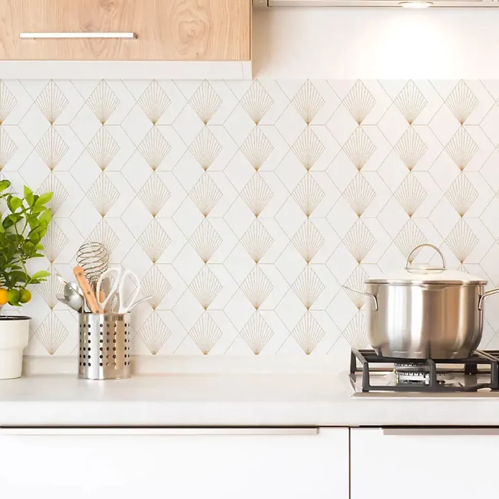 Crédence cuisine en aluminium - art déco blanc 240x50 cm (en 2 bandeaux)