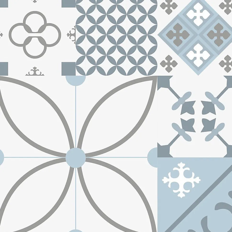 Crédence cuisine en aluminium - effet carreaux de ciment bleu - 200x20 cm (en 2 bandeaux)
