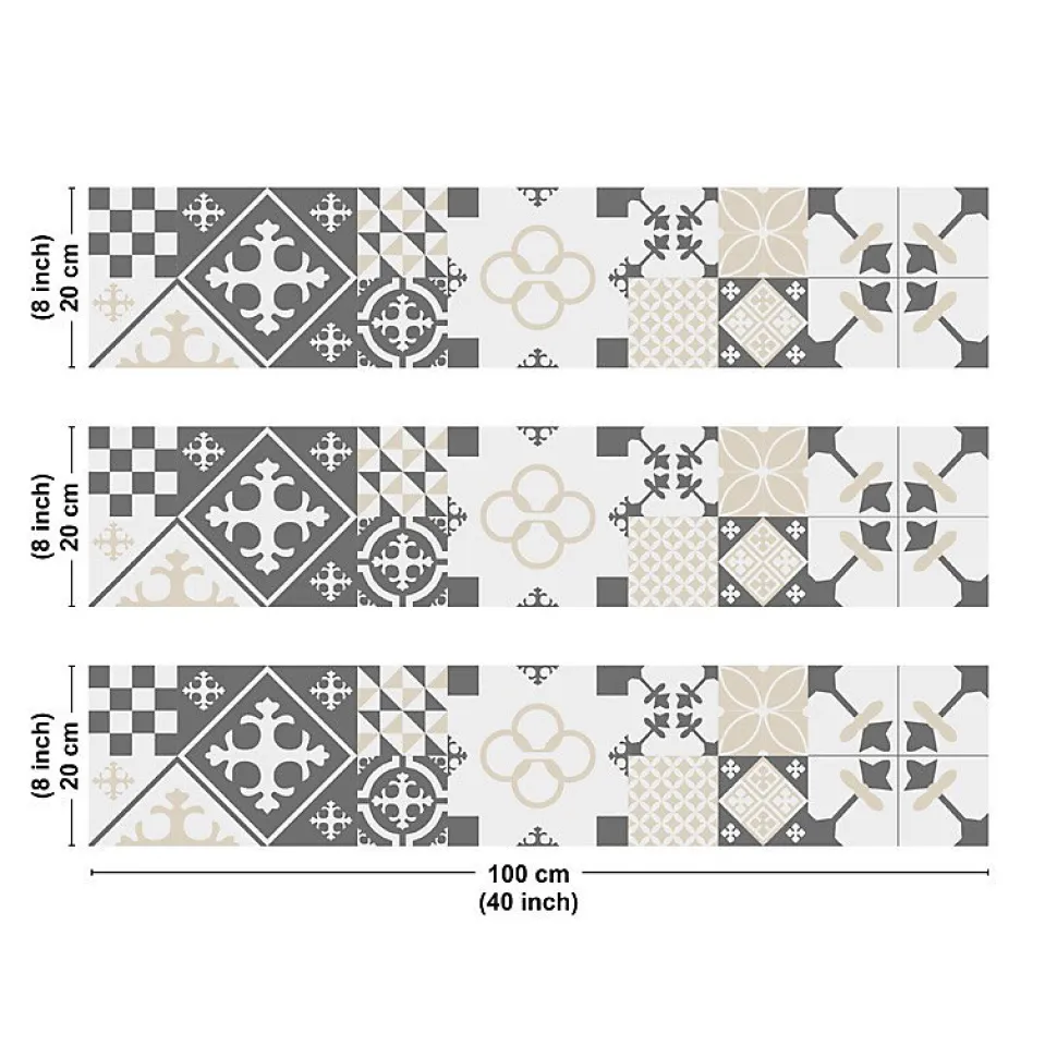 Crédence cuisine en aluminium - effet carreaux de ciment gris - 300x20 cm (en 3 bandeaux)