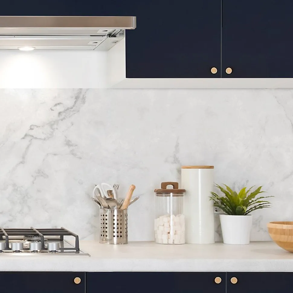 Crédence cuisine en aluminium - effet marbre blanc - 360x50 cm (en 3 bandeaux)