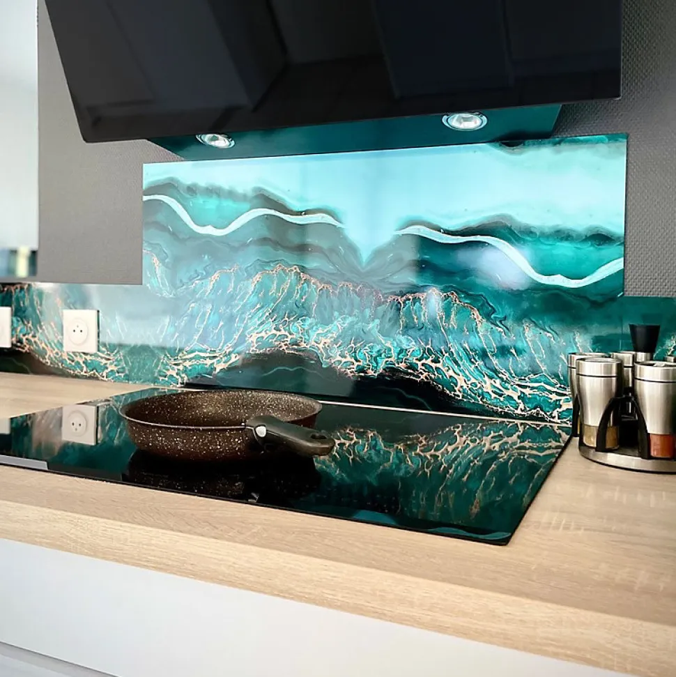 Crédence cuisine en aluminium – effet marbre bleu – 300×20 cm (en 3 bandeaux)