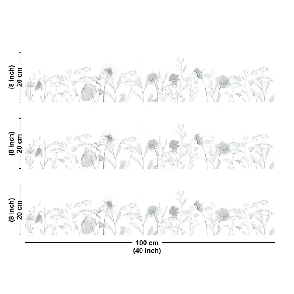 Crédence cuisine en aluminium – motif floral vert – 300×20 cm (en 3 bandeaux)