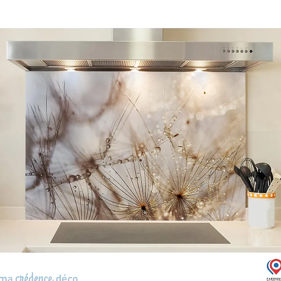 - Simplicité de pose : Nos crédences se posent facilement sur tout type de support (ancien carrelage, brique, plâtre…). Deux types de pose sont possibles : Collage silicone transparente (utilisée dans le bâtiment et disponible dans les magasins de bricolage) : simple et rapide, Vis : adapté aux surfaces non planes.