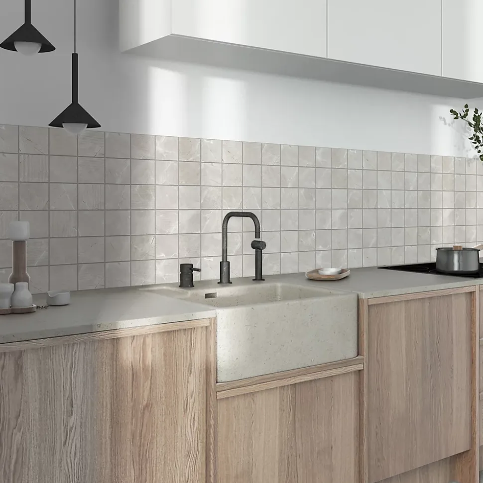 Crédence de cuisine effet marbre blanc carré IDPanneaux L. 255 x H. 60 cm