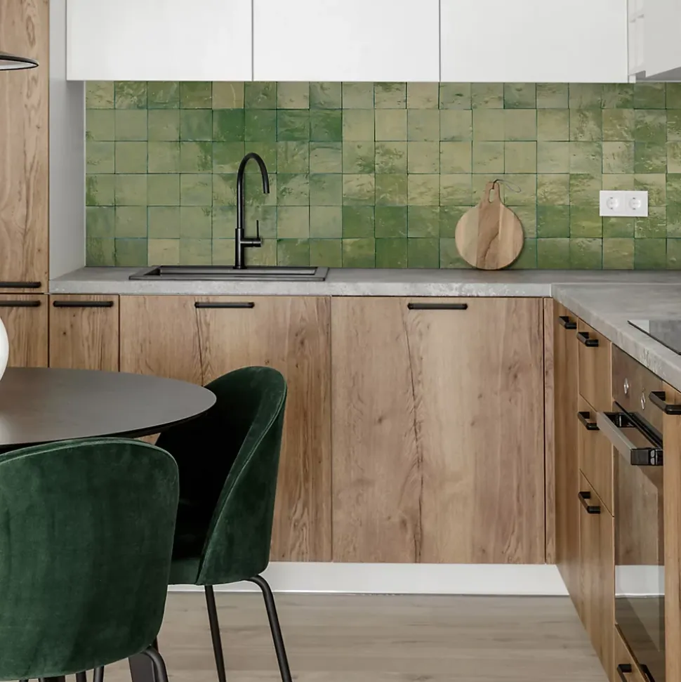 Crédence de cuisine effet Zellige vert brillant IDPanneaux L. 300 x H. 60 cm