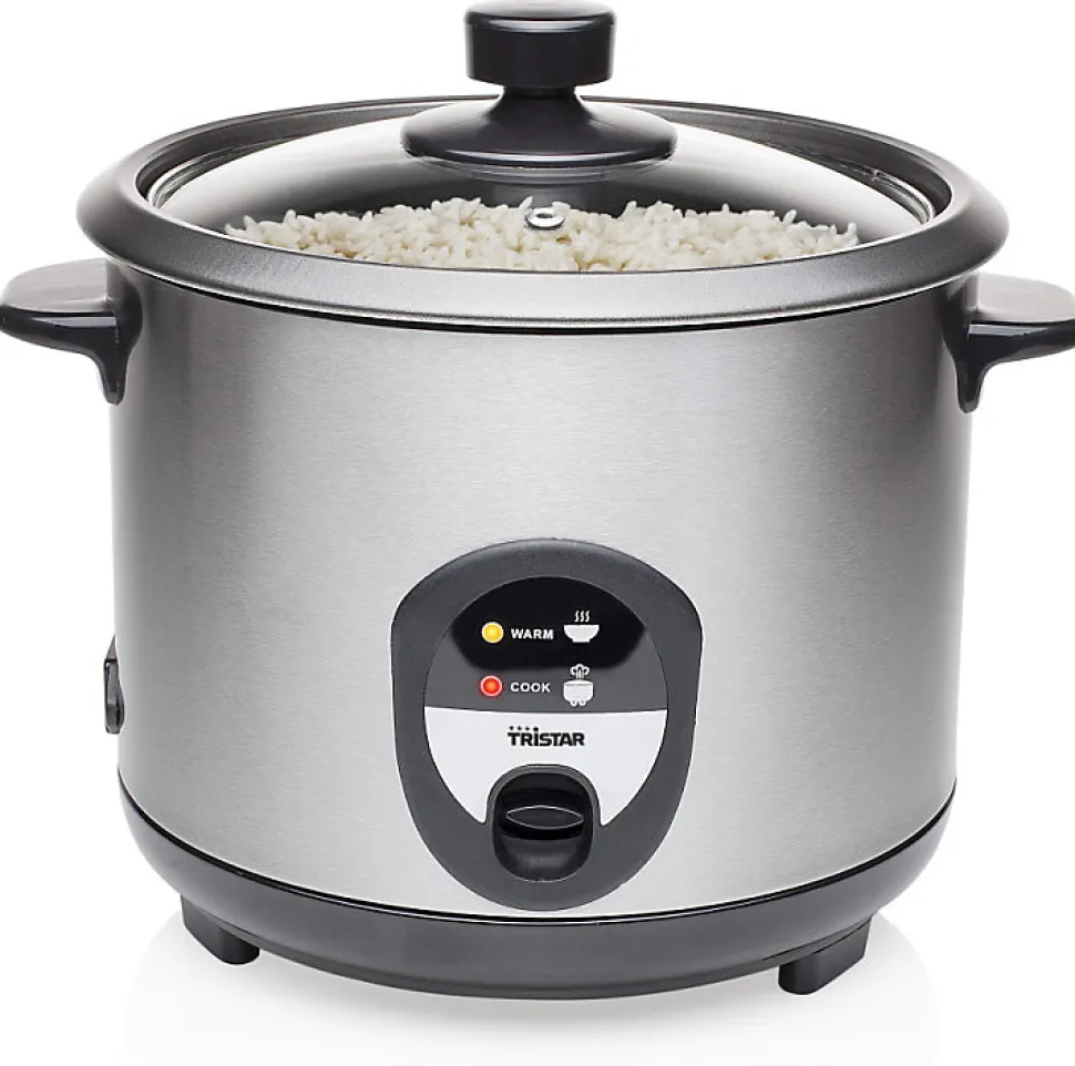Cuiseur à riz 1.5l 500w inox Tristar – Cuiseur à riz RK-6127 Tristar. Capacité 1,5L – Corps inoxLe riz est parfaitement cuit en un temps record. Il s’éteint automatiquement lorsque le riz est prêt. Grâce à sa fonction de maintien au chaud, le riz reste chaud et savoureux durant des heures. – Capacité: 1.5 L.Convient pour 7 tasses.Cuve avec revêtement antiadhésif.Panier amovible.Fonction de maintien au chaud.Arrêt automatique en cas de fonctionnement à sec.Cuillère.Verre doseur.Spatule.Pieds anti-dérapants.Témoins lumineux de fonctionnement.Puissance : 500 W.Cuve amovible : Oui.Spatule : Oui.Poignée(s) : Oui.Fonction garder au chaud : Oui.Matériau du boîtier/corps : Acier inoxydable.Profondeur : 22 cm.Hauteur : 26,5 cm.Poids : 2,06 kg.Largeur : 26,5 cm.Poids du paquet : 2,44 kg.Couleur : Noir, Acier inoxydable.
