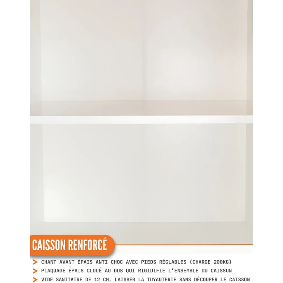 - MATERIAUX SOLIDES ET DURABLES : Le caisson, ou meuble de rangement, est composé de panneaux de particules (aggloméré) d’une épaisseur de 16 mm. Idéal pour un meuble de cuisine robuste qui dure dans le temps.