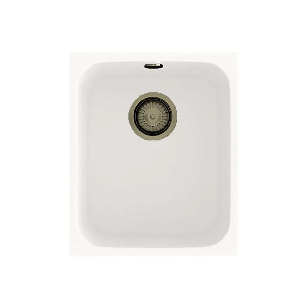 Cuve sous plan POALGI, GANDIA 192, Granit, Blanc Snow, 38 cm, 1 bac bonde or