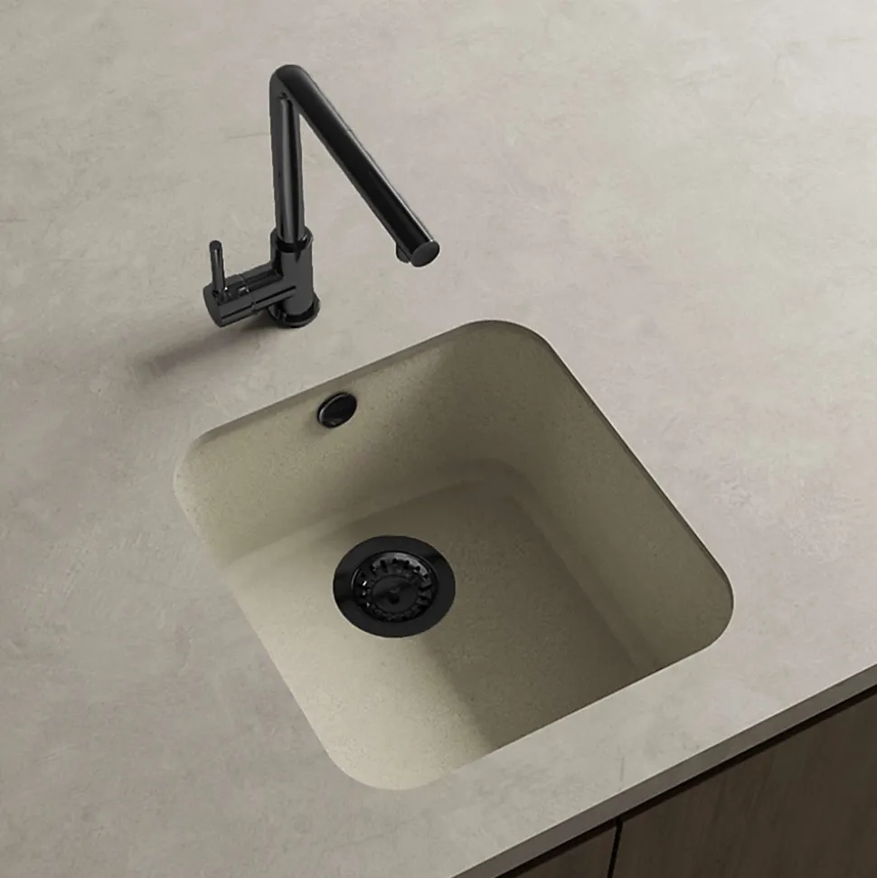 Cuve sous plan POALGI, GANDIA 193, Granit, Beige Pumice, 44 cm, 1 bac bonde noire