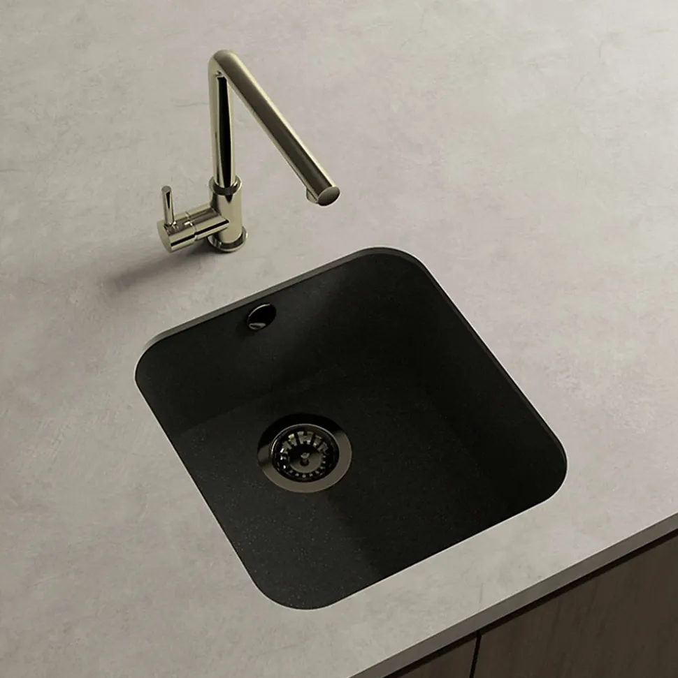 Cuve sous plan POALGI, GANDIA 193, Granit, Noir Basalt, 44 cm, 1 bac bonde or