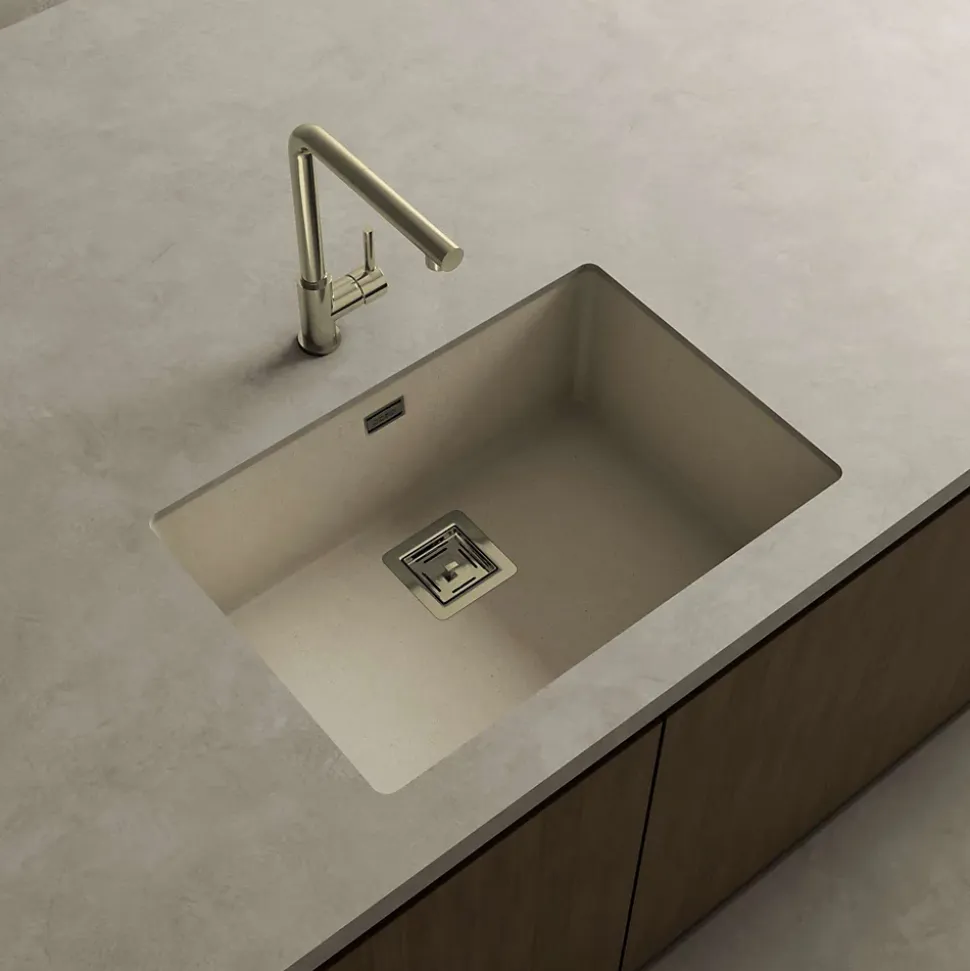 Cuve sous plan POALGI, ZIE 182, Granit, Beige Pumice, 65 cm, 1 bac bonde or