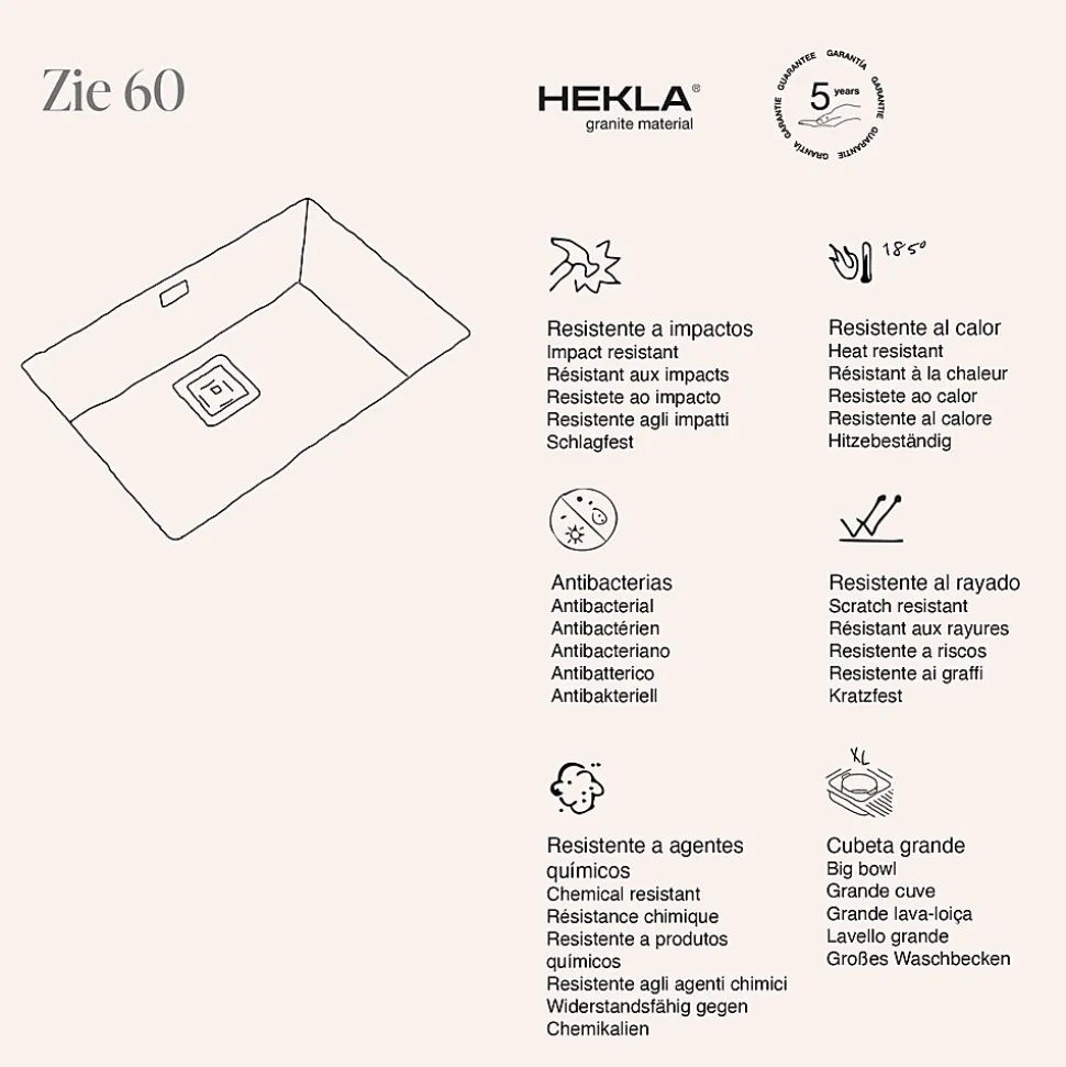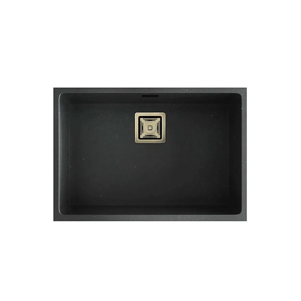 Cuve sous plan POALGI, ZIE 182, Granit, Noir Basalt, 65 cm, 1 bac bonde or