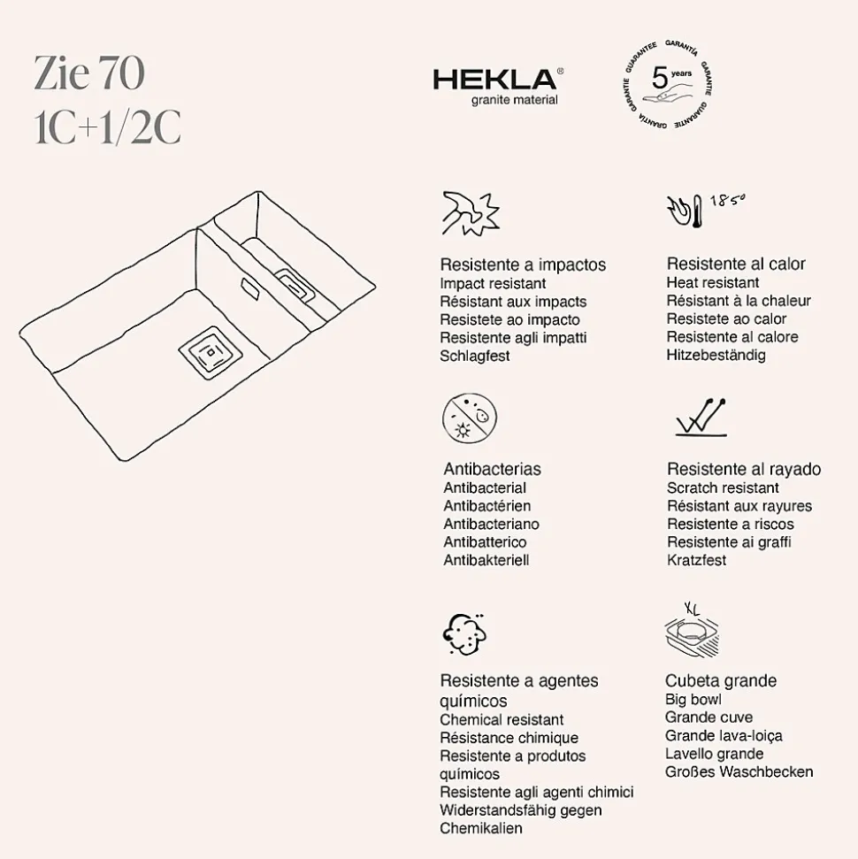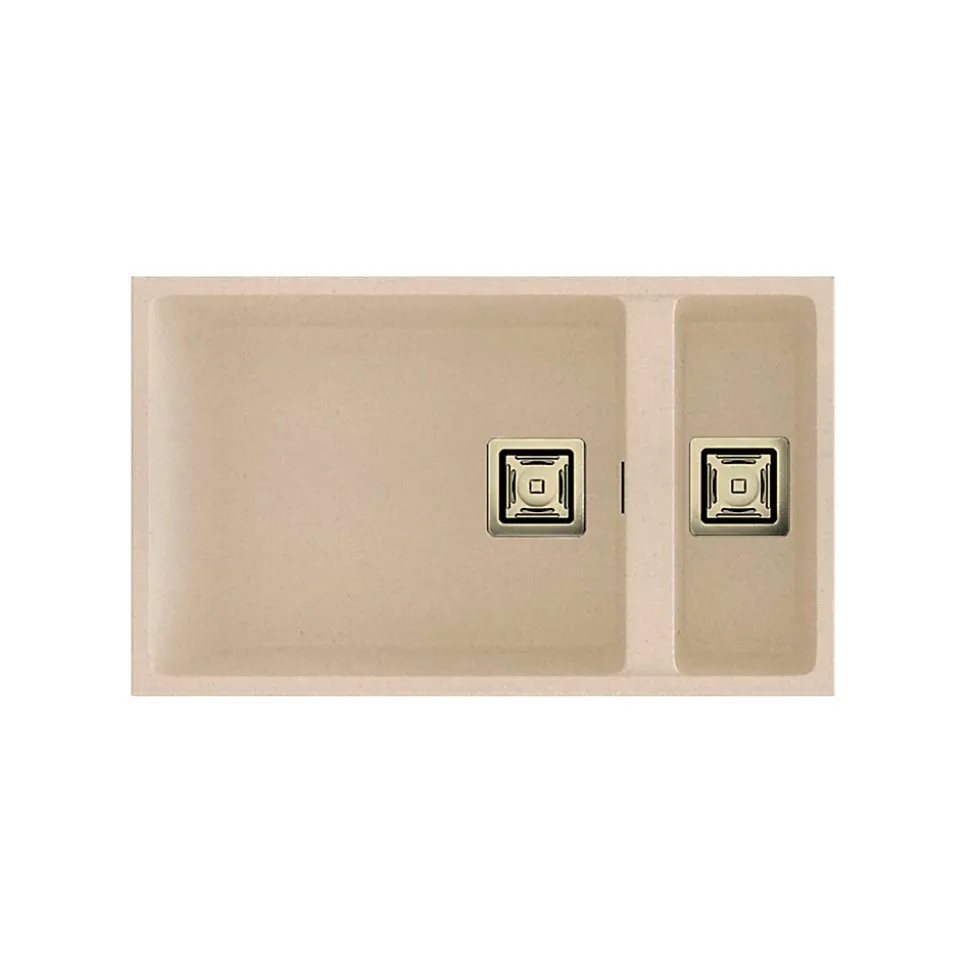 Cuve sous plan POALGI, ZIE 183, Granit, Beige Pumice, 75 cm, 2 bacs bonde or