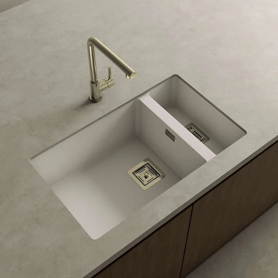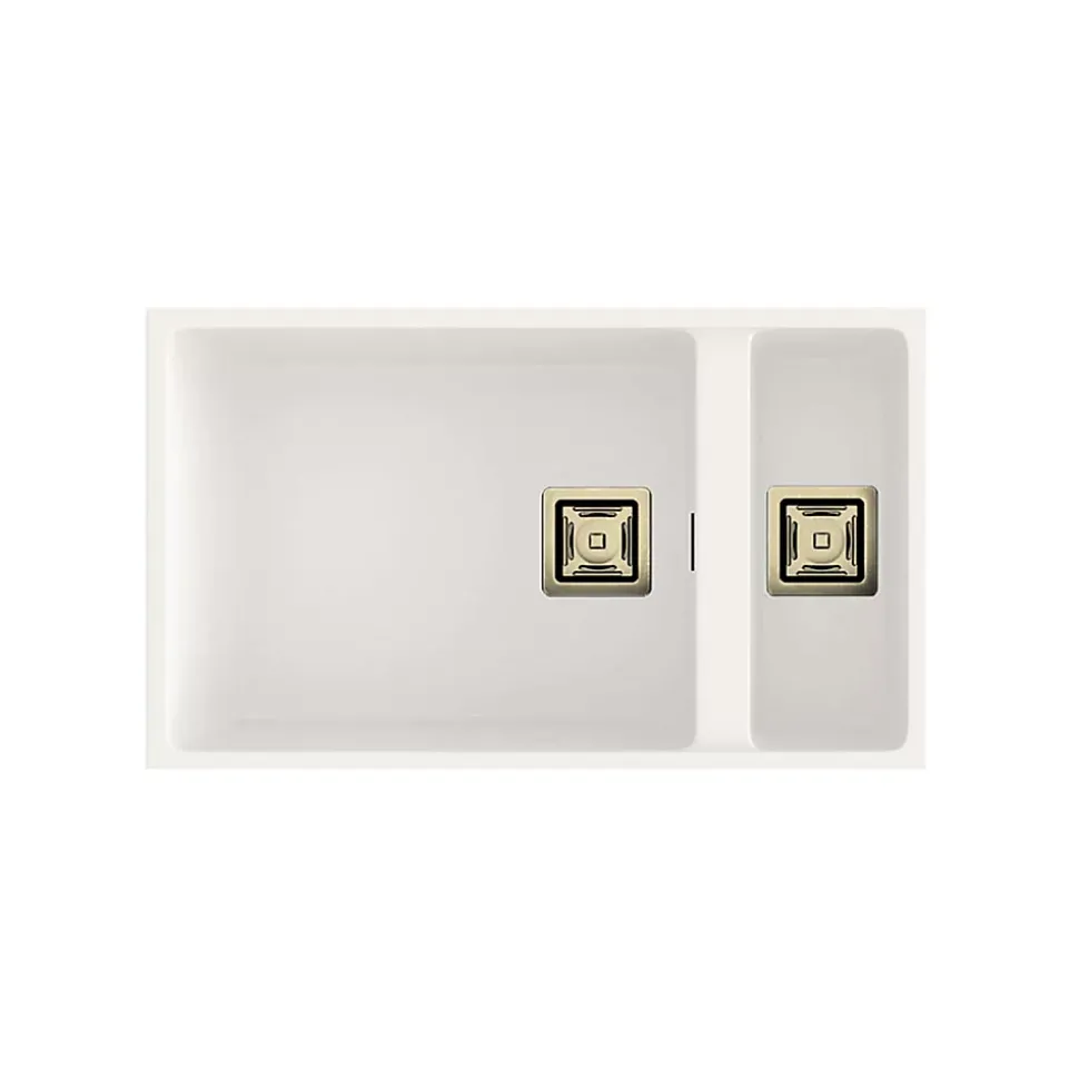 Cuve sous plan POALGI, ZIE 183, Granit, Blanc Snow, 75 cm, 2 bacs bonde or