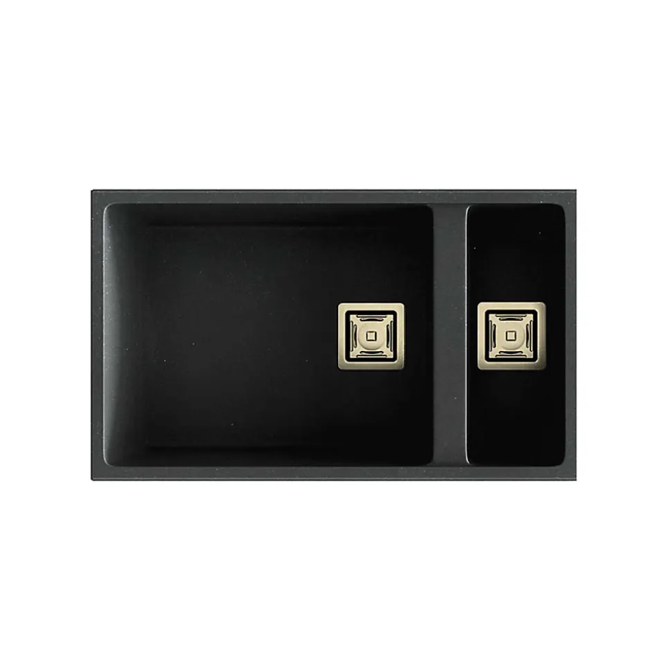 Cuve sous plan POALGI, ZIE 183, Granit, Noir Basalt, 75 cm, 2 bacs bonde or