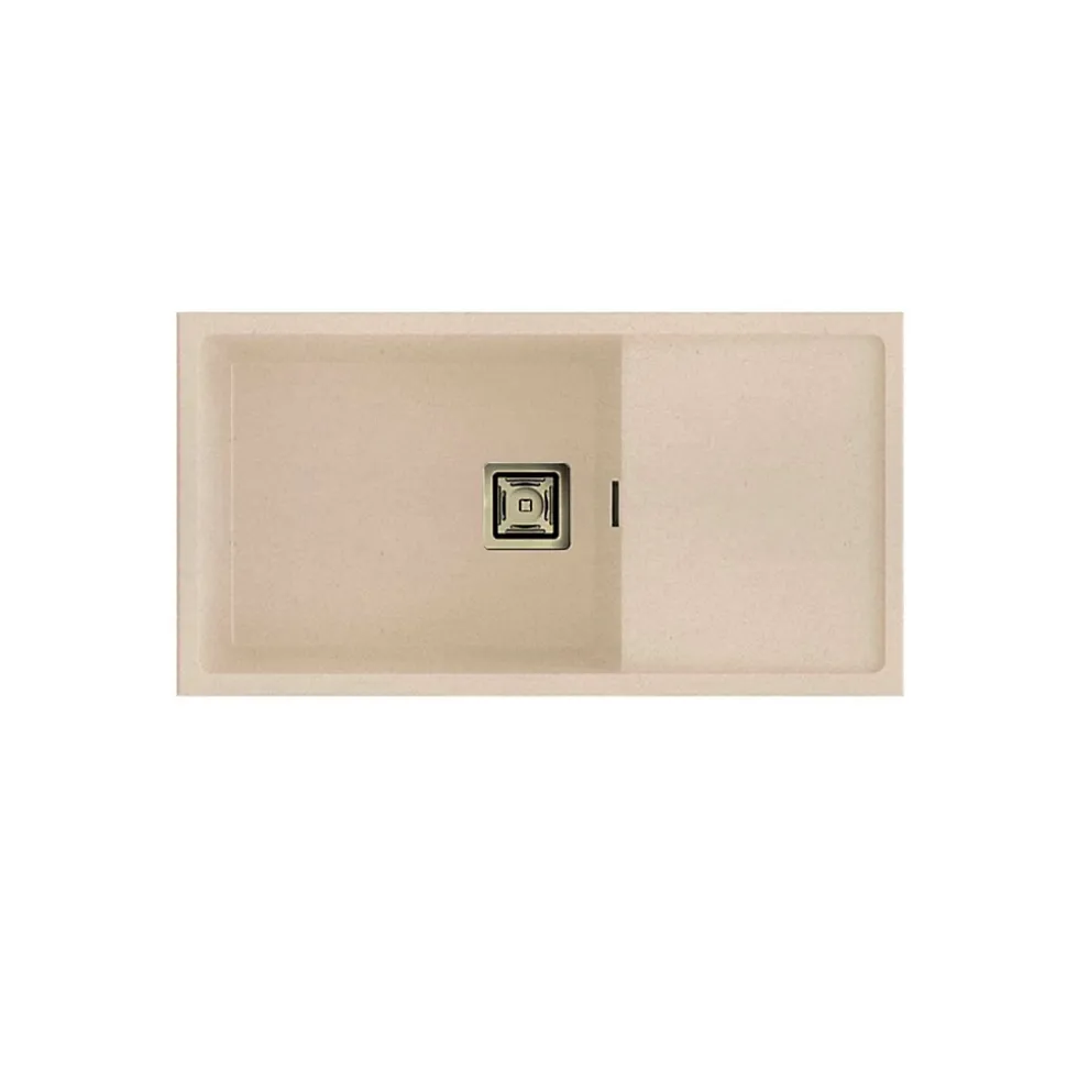Evier à installation sous plan avec une cuve et un égouttoirRésistance aux rayures, à l’abrasion, à la chaleur (185°C), aux agents chimiques et aux colorants selon les tests UNE-EN 13310 -> Sans altérationLivré avec bonde manuelle carrée, siphon, colle mastic et barre de soutien.