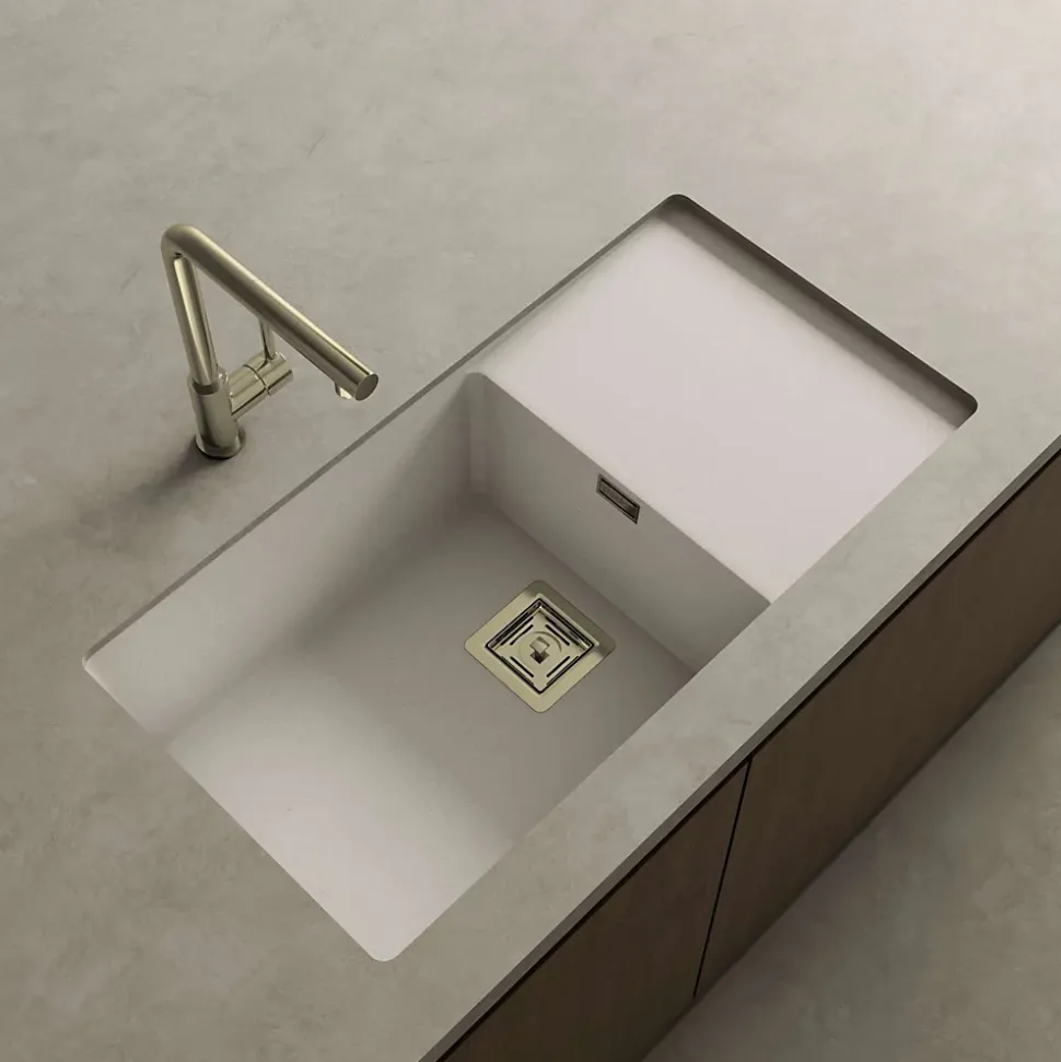 « POALGI : fabricant espagnol depuis 1989 d’éviers et de receveurs de douche haut de gamme et de qualité pour les professionnels du sanitaire et les particuliers. Société certifiée ISO9001.La collection ZieSophistication et modernité, l’évier Zie est un chant à la discrétion. La synthèse d’un nouveau style de cuisine basé sur des lignes pures, l’exemption du superflu et l’intégration de ses éléments. Conçu pour se fondre dans le plan de travail grâce à sa forme, Zie est pur minimalisme.Le matériau HeklaHekla est le nouveau matériau de masse de Poalgi. Un matériau pour résister au passage du temps créé par un projet de recherche et développement dirigé par notre équipe ambitieuse, et approuvé par l’Institut Technologique AIDIMME. Inspiré par la bravoure des volcans, Hekla est un matériau compact composé de charges minérales dans différentes granulométries qui, avec la résine technique ajoutée, enveloppent chaque particule en obtenant un matériau unique et résistant. La technologie de dernière génération utilisée dans la fabrication des produits Hekla garantit la résistance à la charge, les dommages d’impact et les effets des températures élevées et basses, ainsi que la sécurité du transport, de l’installation et de l’utilisation quotidienne. Son traitement de surface empêche l’apparition de bactéries et son traitement V (anti-vieillissement) rend chaque produit Hekla en un véritable survivant au passage du temps.Le revêtement BactiblockCe procédé est un additif antimicrobien idéal pour une large variété de matériaux polymères. La technologie brevetée par la société NBM repose sur de l’argile fonctionnalisée avec de l’argent, laquelle va se comporter comme une source naturelle hautement efficace comme agent microbien. Cet additif inhibe le développement des bactéries de type champignon et levure, se convertissant ainsi en une solution efficace contre les odeurs et les tâches. »