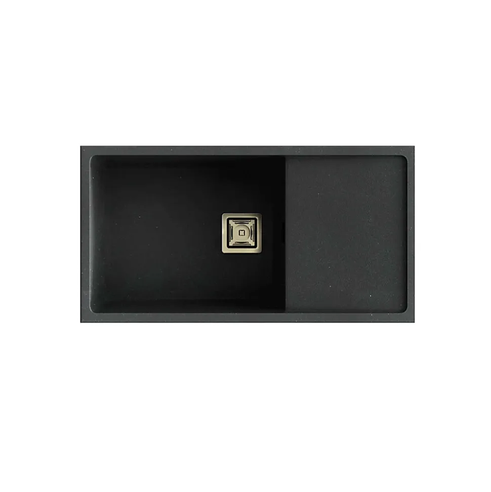 Cuve sous plan POALGI, ZIE 185, Granit, Noir Basalt, 85 cm, 1 bac et 1 égouttoir bonde or