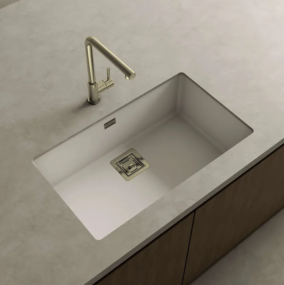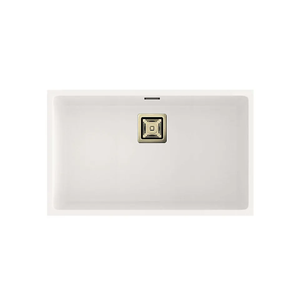 Cuve sous plan POALGI, ZIE 187, Granit, Blanc Snow, 75 cm, 1 bac bonde or