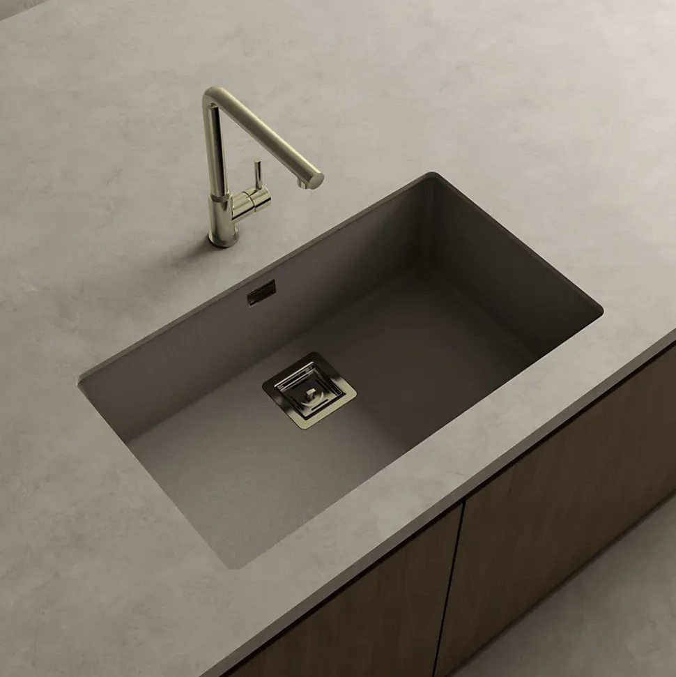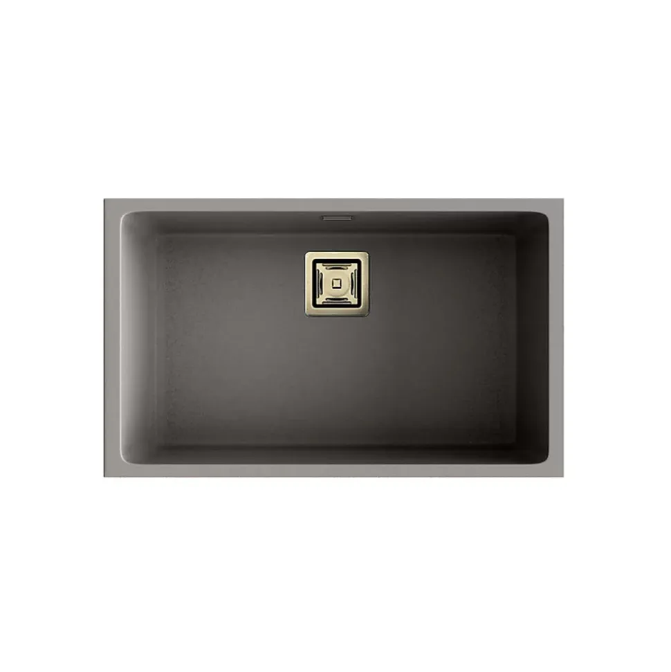 Cuve sous plan POALGI, ZIE 187, Granit, Gris Ash, 75 cm, 1 bac bonde or