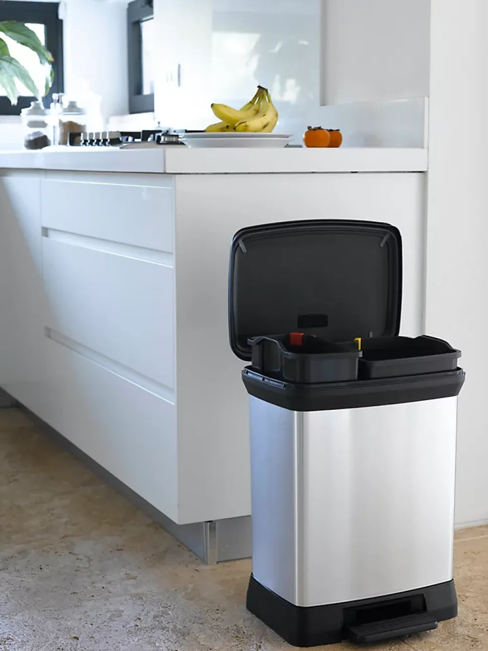 La série DECOBIN de Curver est un rêve de design ! Ces poubelles ont l’aspect du métal. mais ont l’avantage d’être fabriquées en plastique. ce qui leur confère un extérieur sans rouille et sans bosses. facile à nettoyer et qui ne laisse pas de traces de doigts. Disponibles dans une large gamme de formes et de tailles. elles s’adaptent à toutes les famille et à tous les goûts. Cette poubelle rectangulaire à pédale est une solution de tri pratique. Elle est équipée de deux seaux intérieurs d’une capacité de 10 litres et 18 litres et est livrée avec un jeu de clips colorés pour faciliter le tri des déchets. Alternativement. les deux compartiments peuvent être retirés. permettant à la poubelle d’être utilisée comme un modèle de 30 litres avec un seul compartiment. Quand les équipements pratiques sont aussi esthétiques. pourquoi ne pas ajouter une touche de style à votre intérieur ?
