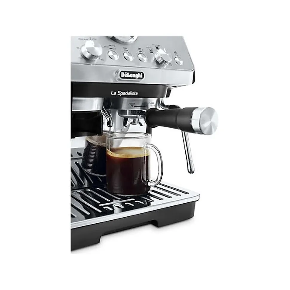 Espresso La Specialista Arte – Gamme Premium – Nouvelle machine expresso avec moulin intégré et technologie My Latte Art – Doté d’une buse vapeur semi-professionnelle, cet expresso est parfait pour réussir toutes vos mousses de lait et obtenir d’onctueux Cappuccinos ou Latte Macchiatos – 2 recettes pré-enregistrées : expresso et americano – Possibilité de personnaliser toutes ses boissons via la molette (8 finesses de mouture) et de choisir parmi 3 choix de température – Le manomètre affiche la pression appliquée sur la mouture et indique la zone optimal ou il faut se trouver pendant l’extraction – Filtres simple 1 ou 2 tasses – Livré avec un kit barista complet : tapis de tassage, tamper et entonnoir – Trappe de rangement – Pichet à lait et kit d’entretien inclus – Puissance 1400 W – Coloris inox – Garantie 2 ans.
