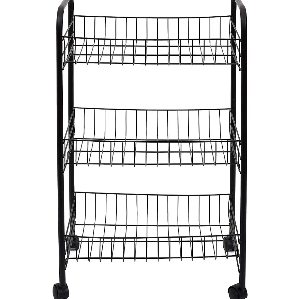 Aspect : Coloris = Noir • Matériau principal = Fer • Matériaux secondaires = Polypropylène • Dimensions : Hauteur (en cm) = 62 • Longueur (en cm) = 40 • Profondeur (en cm) = 26 • Autres caractéristiques : Informations complémentaires = 4 roulettes – 3 niveaux • Poids (en kg) = 1,20 • Desserte 3 niveaux en métal noir 62 x 26 x 40 cm