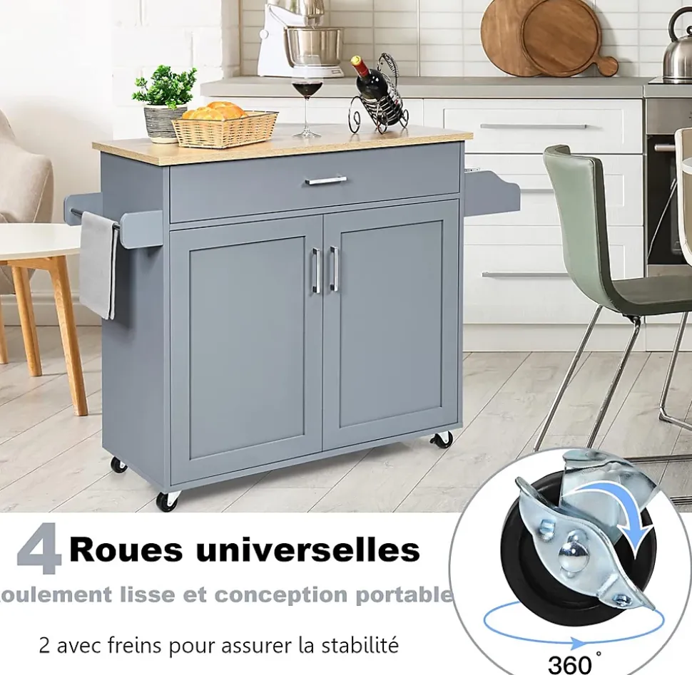 - Grand Espace de Stockage : Le desserte de cuisine combine parfaitement les étagères de rangement et le grand tiroir, vous offrant suffisamment d’espace de stockage pour placer les nécessités de différentes tailles. Et un porte-serviettes installé sur le côté fournit place supplémentaire.