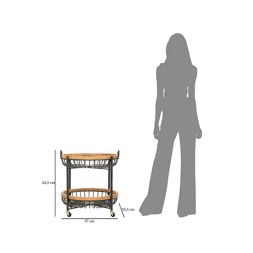 Informations Techniques :Dimensions : L. 57 x l. 55,5 x H. 62,5 cmMatières : Métal & RotinSpécificités :Pratique & UtileDesserte de cuisine à roulettesAvec 2 paniersTour en rotin À monter soi-mêmePoids : 7,7 kgCouleur : Noir & Naturel