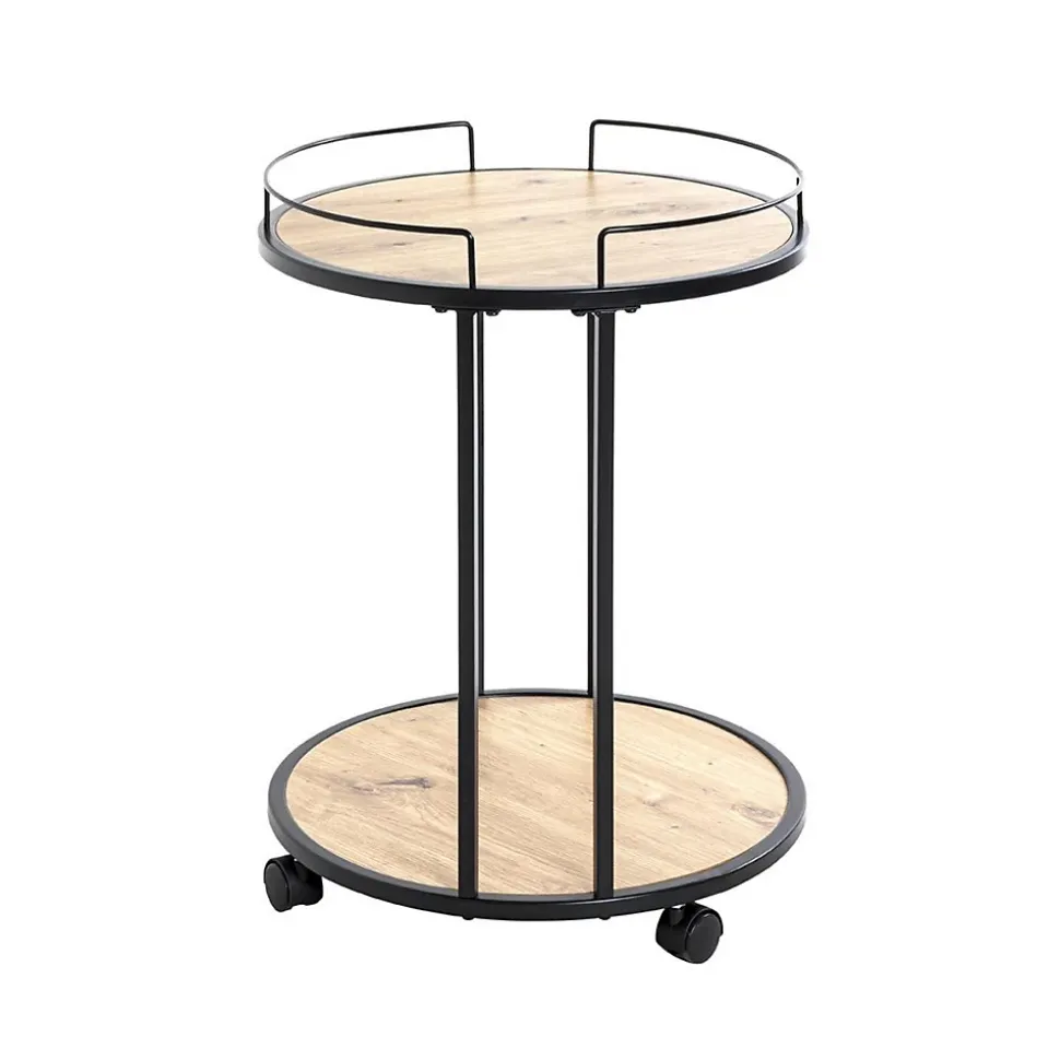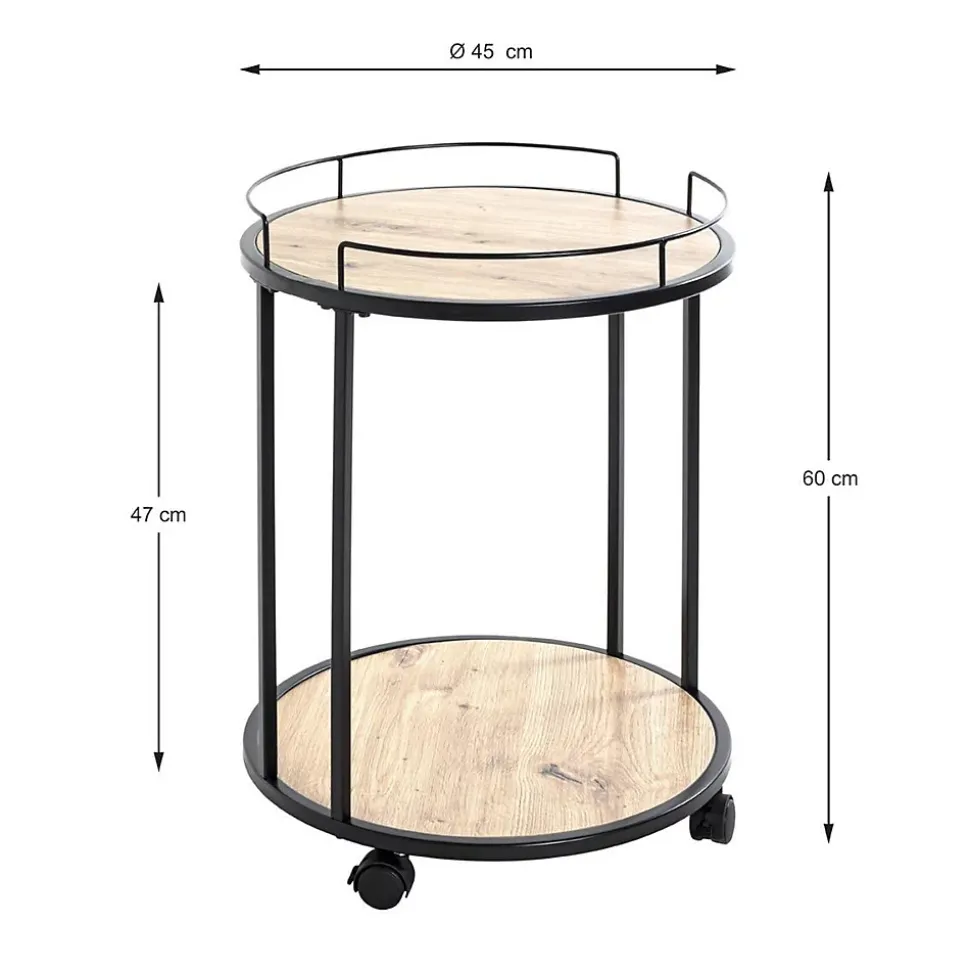 Informations Techniques : Dimensions : D. 45 x H. 60 cmHauteur Intermédiaire : 47 cmMatière : Métal, MDF & MélamineSpécificités :Tendance & DesignDesserte de Cuisine2 NiveauxForme RondeSur RoulettesEffet LaquéA monter soi-mêmeNombre de colis : 1Poids : 4,59 kgCouleur : Noir & Chêne