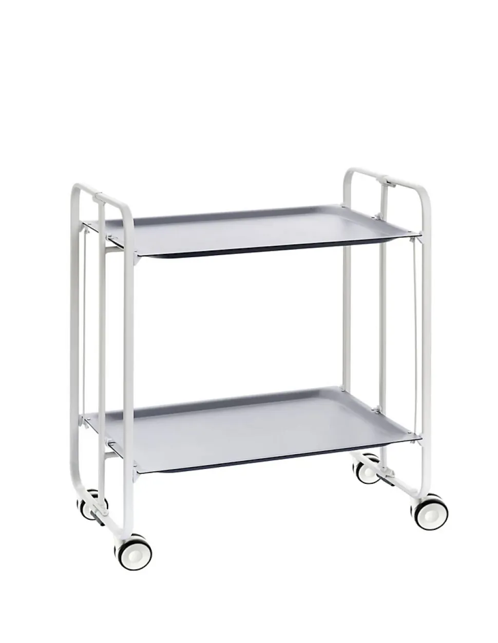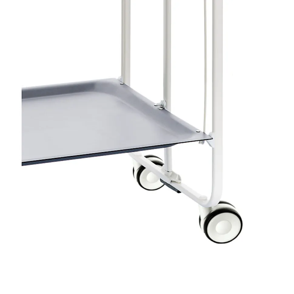 Desserte pliante BAUHAUS avec roulettes, Structure blanche, 2 niveaux, 4 positions