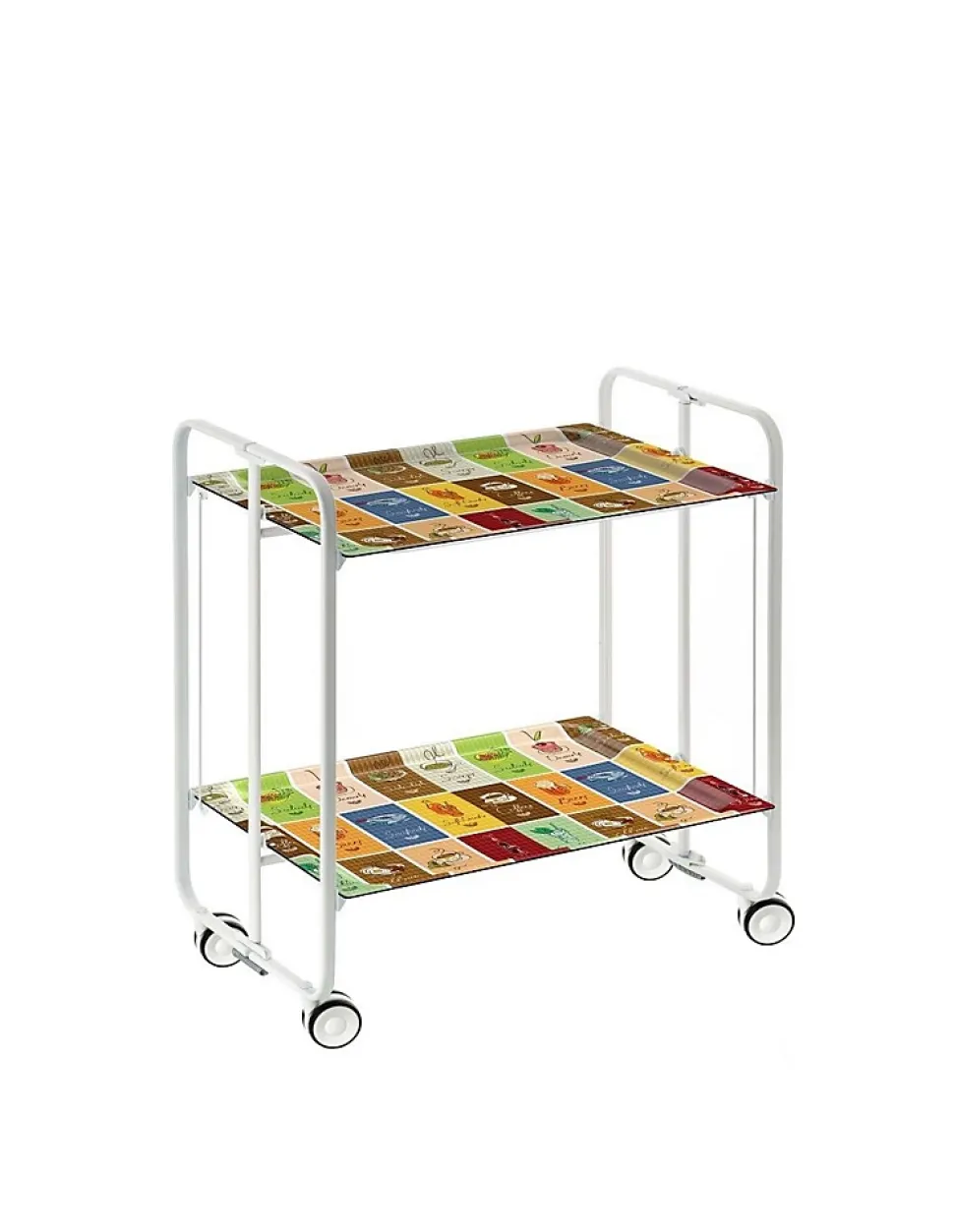 - Avec sa structure métallique blanche et ses plateaux en stratifié décoratif, elle s’adapte à chaque espace de la maison : cuisine, salon ou terrasse.