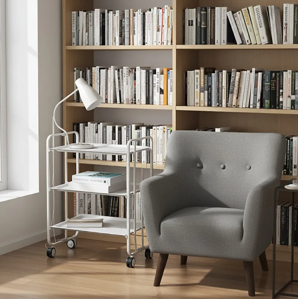 - Sa structure métallique blanche et ses plateaux en stratifié décoratif en font un meuble polyvalent et élégant, idéal pour la cuisine, le salon ou la terrasse.