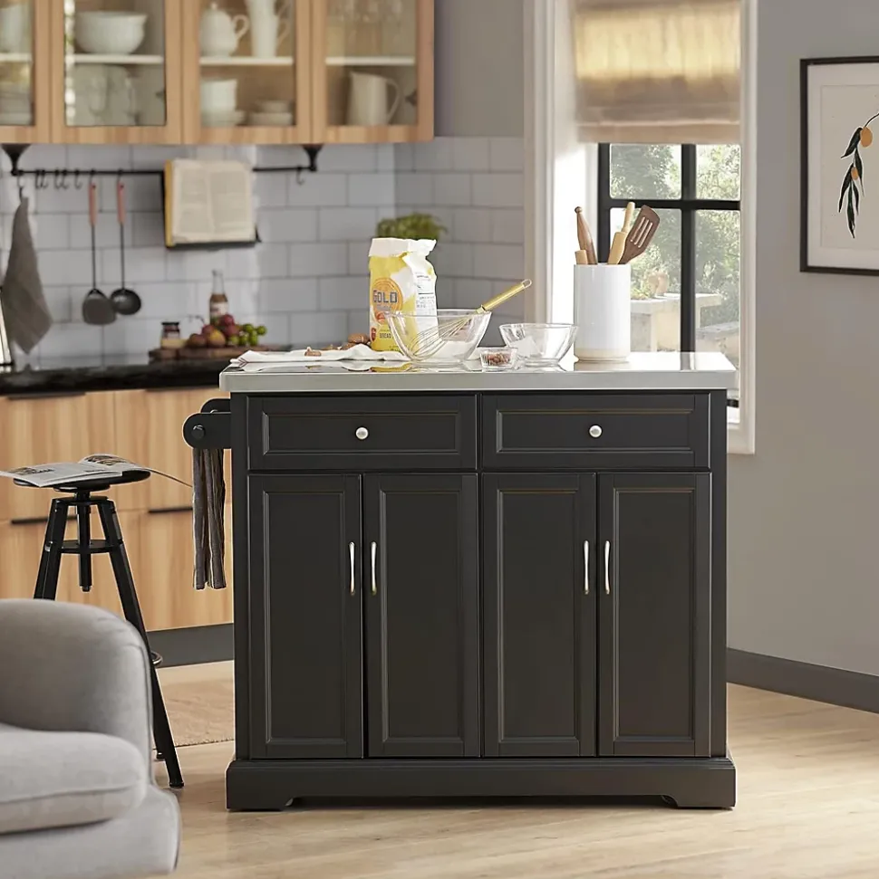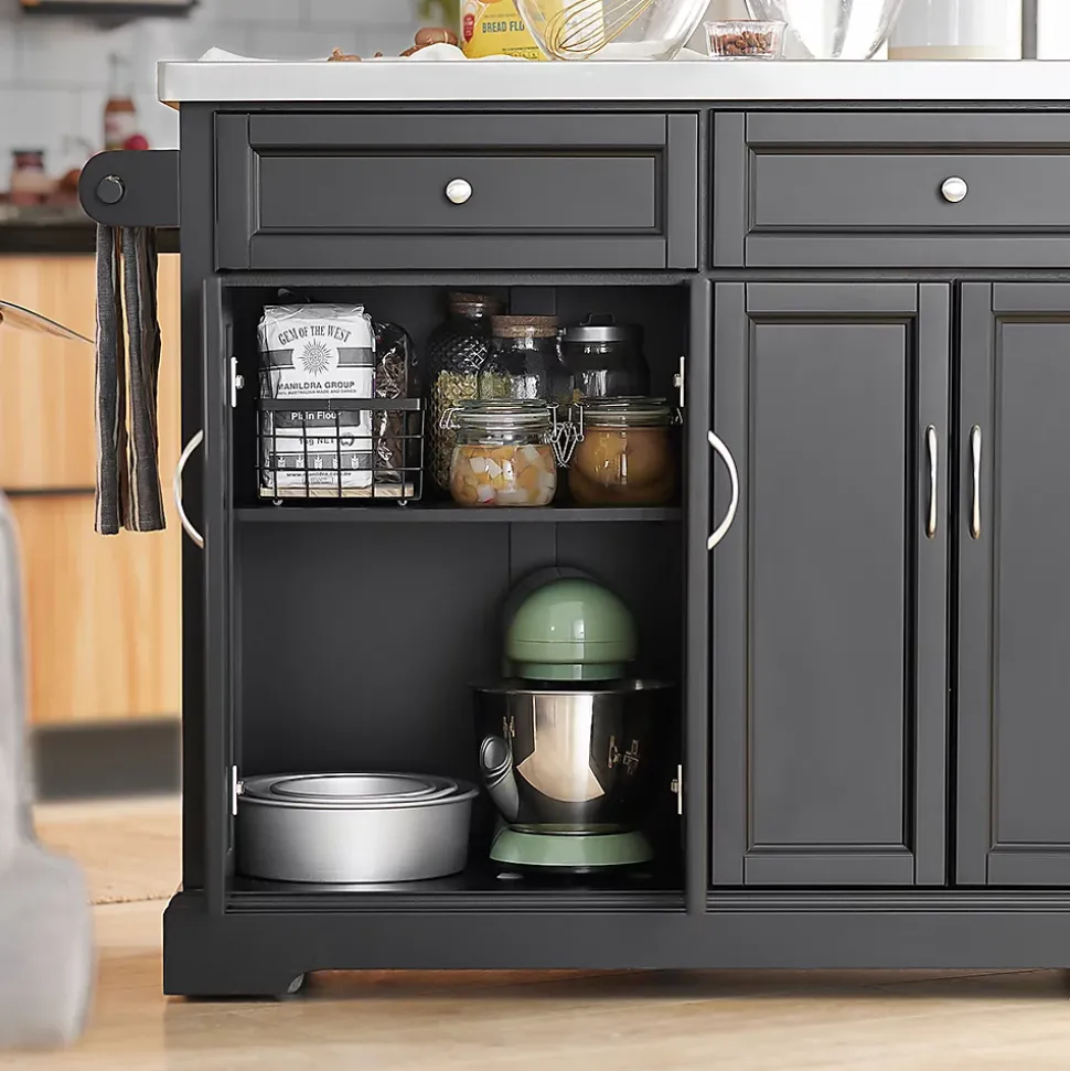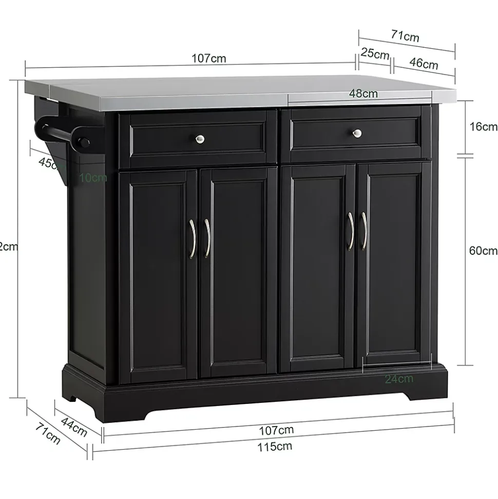 Gewicht: ca.: 55,7kg; Belastbarkeit: bis 75kg; Material: Hochwertiger Holz mit MDF + Edelstahltop. Produktmaße: BHT ca.: 115x92x46-71cm (siehe Abbildung); Paketmaße: Paket A: 119x55x25cm; Paket B: 98x46x25cm. Die auf der Rückseite erweiterbare Arbeitsplatte aus Edelstahl bietet ein variables Platzangebot und punktet durch ihre solide Tragfähigkeit. Ausgestattet mit einem Handtuchhalter, zwei geschlossenen Schubladen und zwei Geschirrschränken mit Türen, in denen Sie viele Utensilien verstauen können. Der Küchenwagen sorgt mit der schicken Optik für ein ganz besonderes Highlight im Koch- und Essbereich.