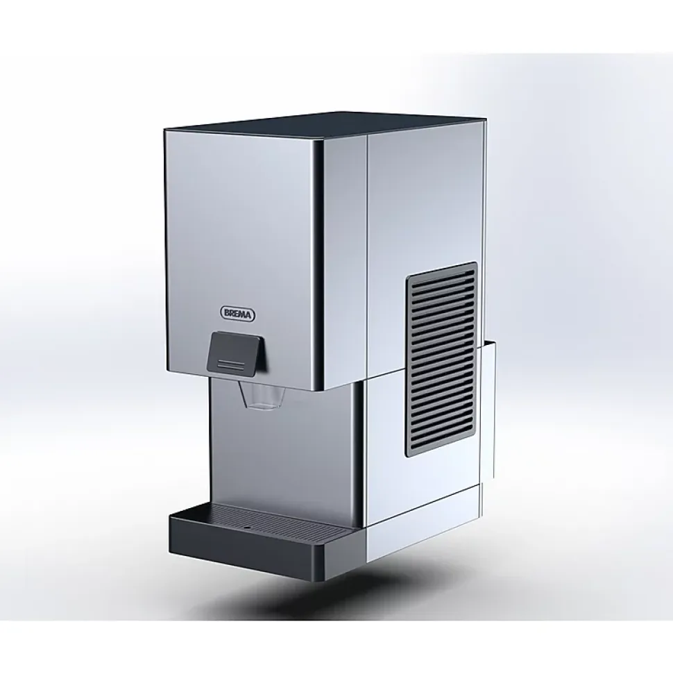 Distributeur automatique de glace nuggets de la marque Brema Distribution automatique de glace NuggetsCondenseur refroidi par air Carrosserie inox AISI 304Circuit frigorifique R-290Fonctionnent en ambiance de +10° à +43°C.Alimentation 230 V (mono) – 50 Hz.
