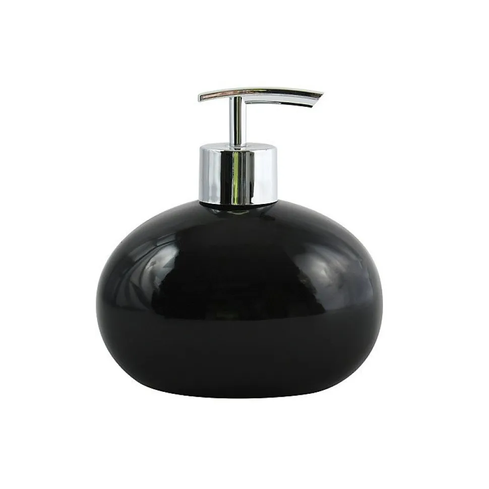 Distributeur de savon de la marque MSV. Tout en élégance, le distributeur de savon> de la gamme JAVA est un indispensable non seulement pour la décoration, mais aussi pour le stockage et le dosage pratique du savon. Les lotions et les désinfectants peuvent également être utilisés. Cette combinaison fait du distributeur un accessoire élégant et intemporel pour la salle de bain ou de la cuisine. Un accessoire qui attire l’attention et qui s’intègre parfaitement dans n’importe quelle pièce. Rechargeable : Une fois le savon ou la lotion épuisée, le distributeur peut facilement être rempli à nouveau. S’adapte aux autres accessoires de salle de bain de la même série. Dimensions: 12,8cm Couleur: Noir Matière: Céramique