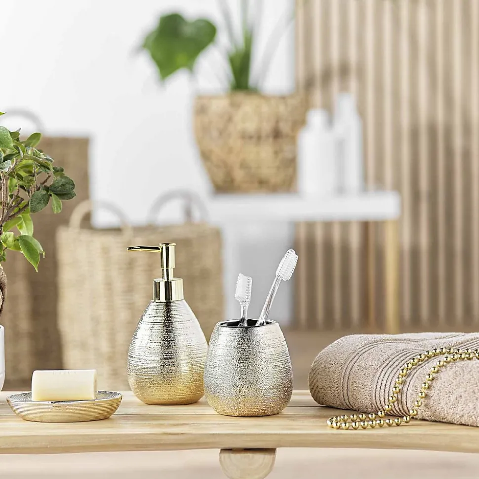 Informations Techniques :Dimensions : D. 9,4 x H. 17,4 cmMatière : GrèsSpécificités :Pratique & TendanceDistributeur de savon décoMotif uni métalliséVendu à l’unitéForme rondePoids : 0,33 kgCouleur : Or
