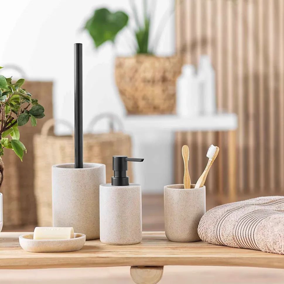 Ce distributeur de savon apporte une solution simple et élégante pour garder votre salle de bain ordonnée au quotidien. Son format compact s’adapte facilement près d’un lavabo ou sur une étagère. Conçu pour un usage régulier, il convient parfaitement aux environnements humides. Son système de pompe permet de doser le savon liquide de manière pratique. Informations complémentaires Dimensions : diamètre 7 cmxhauteur 16 cm Matière : polyrésine, adaptée à l’usage quotidien en salle de bain Utilisation : distributeur pour savon liquide ou lotion Style : Finition unie avec aspect granite Vendu à l’unité Entretien : nettoyage à la main avec une éponge douce, lavage à 30° conseillé Inclus : 1 distributeur de savon (Ø 7×16 cm)